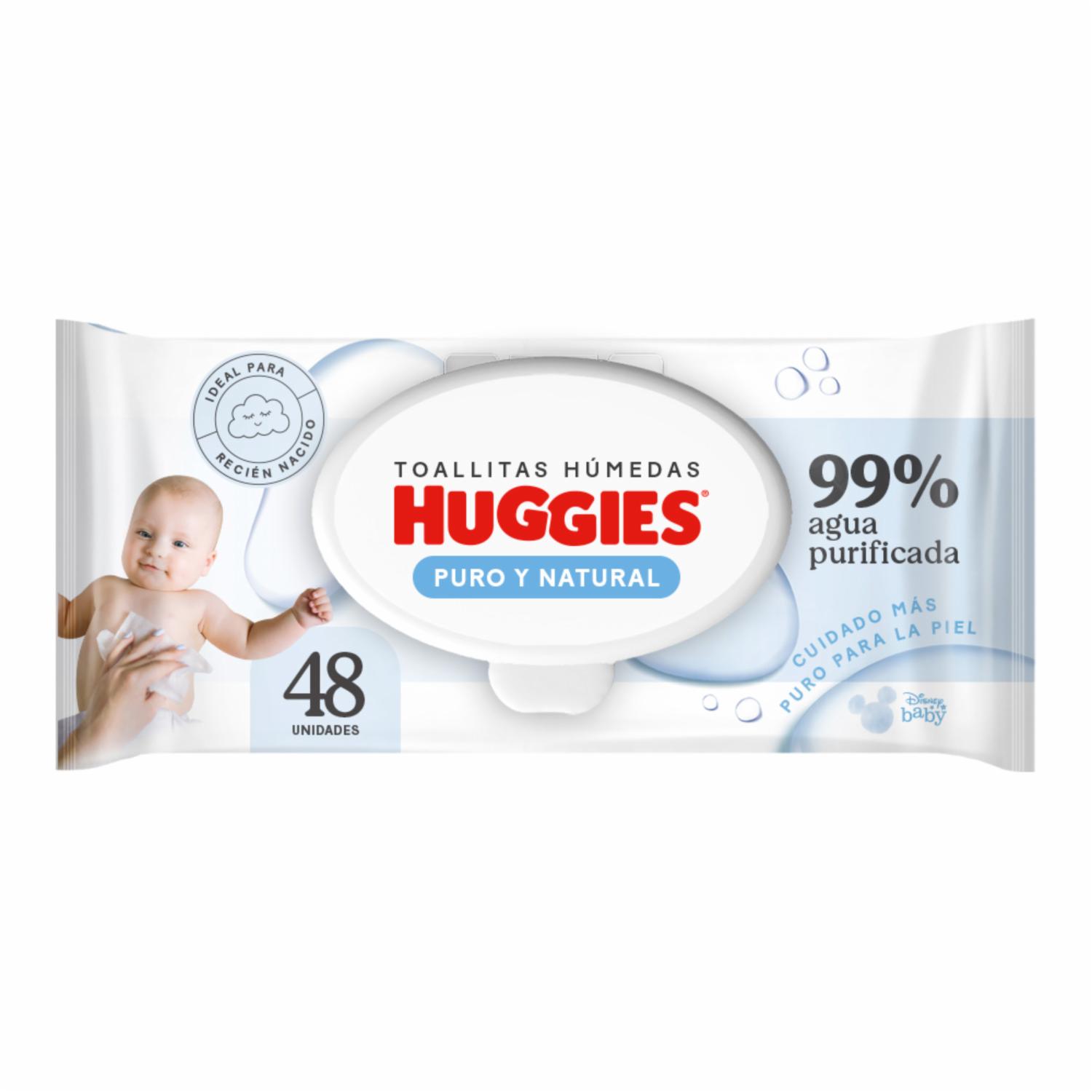 - Toallitas Húmedas Huggies® Puro y Natural?. Cuidado natural con Eco-Fibras. Fibras de origen natural contenidas en el producto para una suavidad como el algodón?. Seguras como el agua y algodón.?. Recomendadas para recién nacidos?. Limpieza más suave, pura y sana, especial para pieles sensibles. ?. Libres de parabenos.?,0% Alcohol,0% fragancia. ?. Dermatológicamente probado.?,99% agua