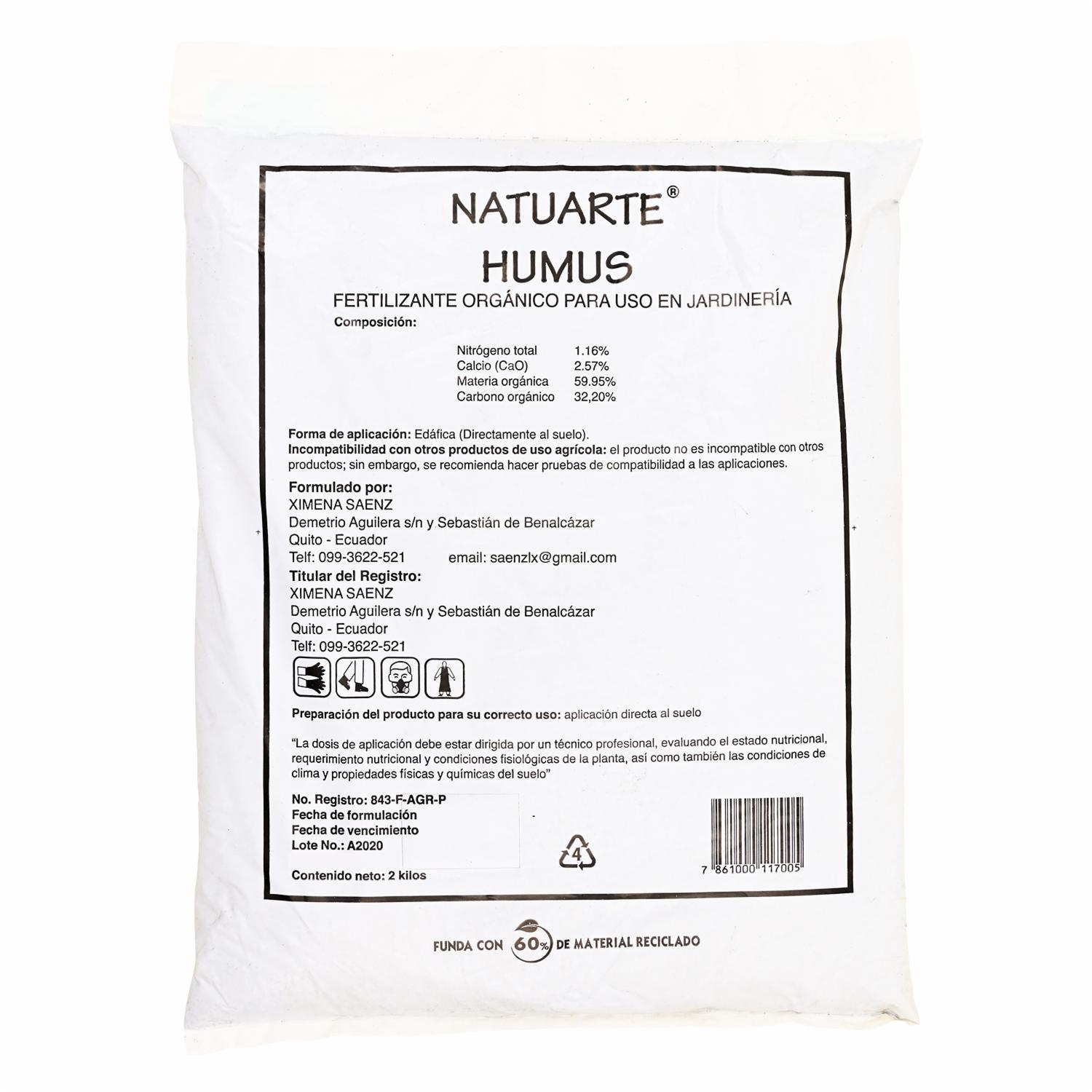 consultando preciosHumus Orgánico NATUARTE 2 Kl – NATUARTE. Disponible en nuestros locales. Precio y stock pueden variar según la tienda.