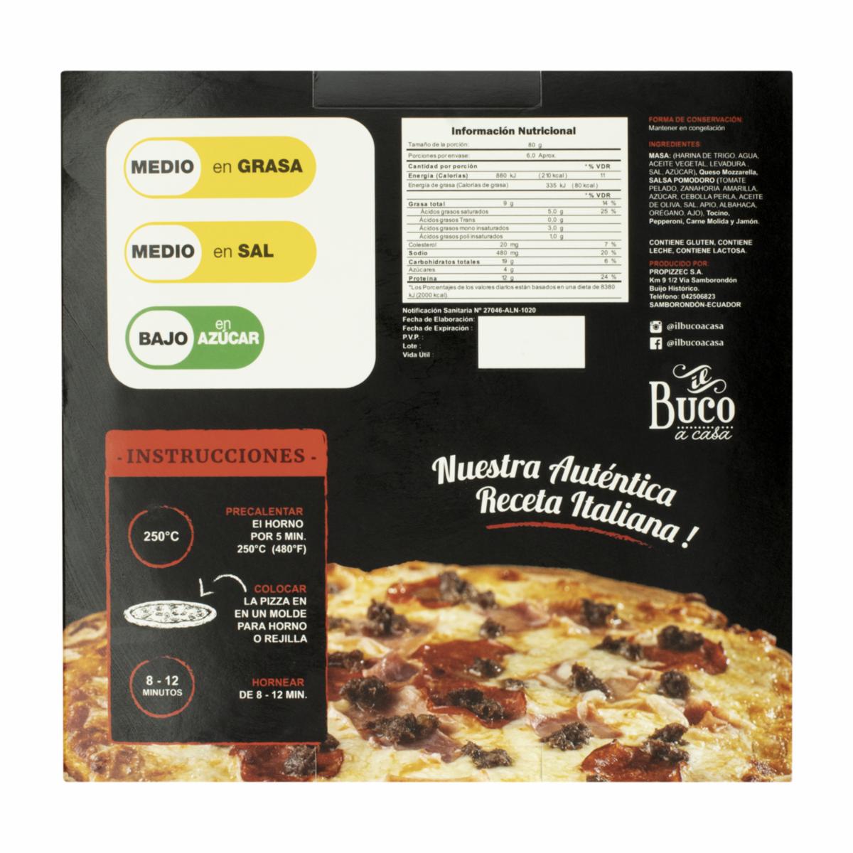 Pizza Carne Jamón Y Pepperoni IL BUCO 530 G