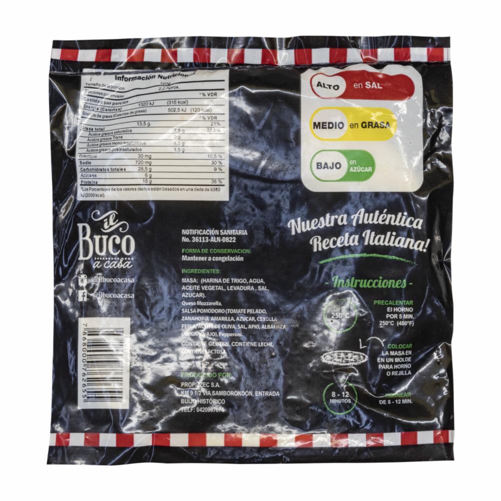 Pizza Personal Pepperoni IL BUCO 240 G – IL BUCO. Disponible en nuestros locales. Precio y stock pueden variar según la tienda.