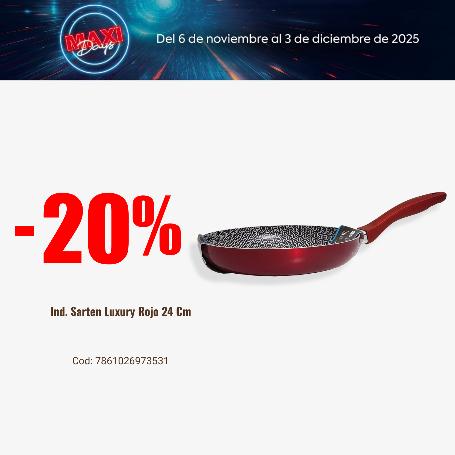Ind. Sarten Luxury Rojo 24 Cm