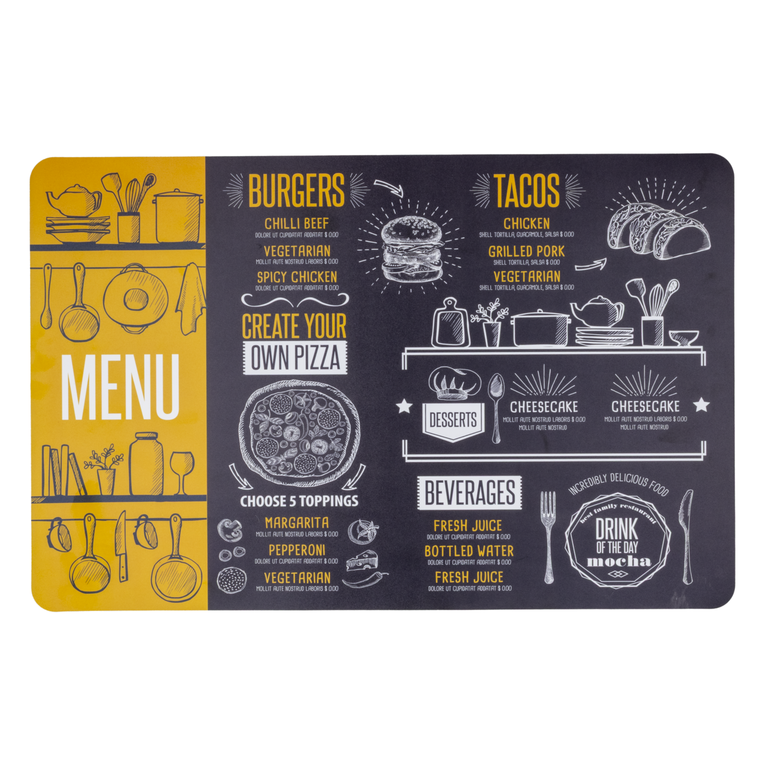 consultando preciosIndividual Menú A FREE HOME 43.5X28.2 Cm – FREE HOME. Disponible en nuestros locales. Precio y stock pueden variar según la tienda.