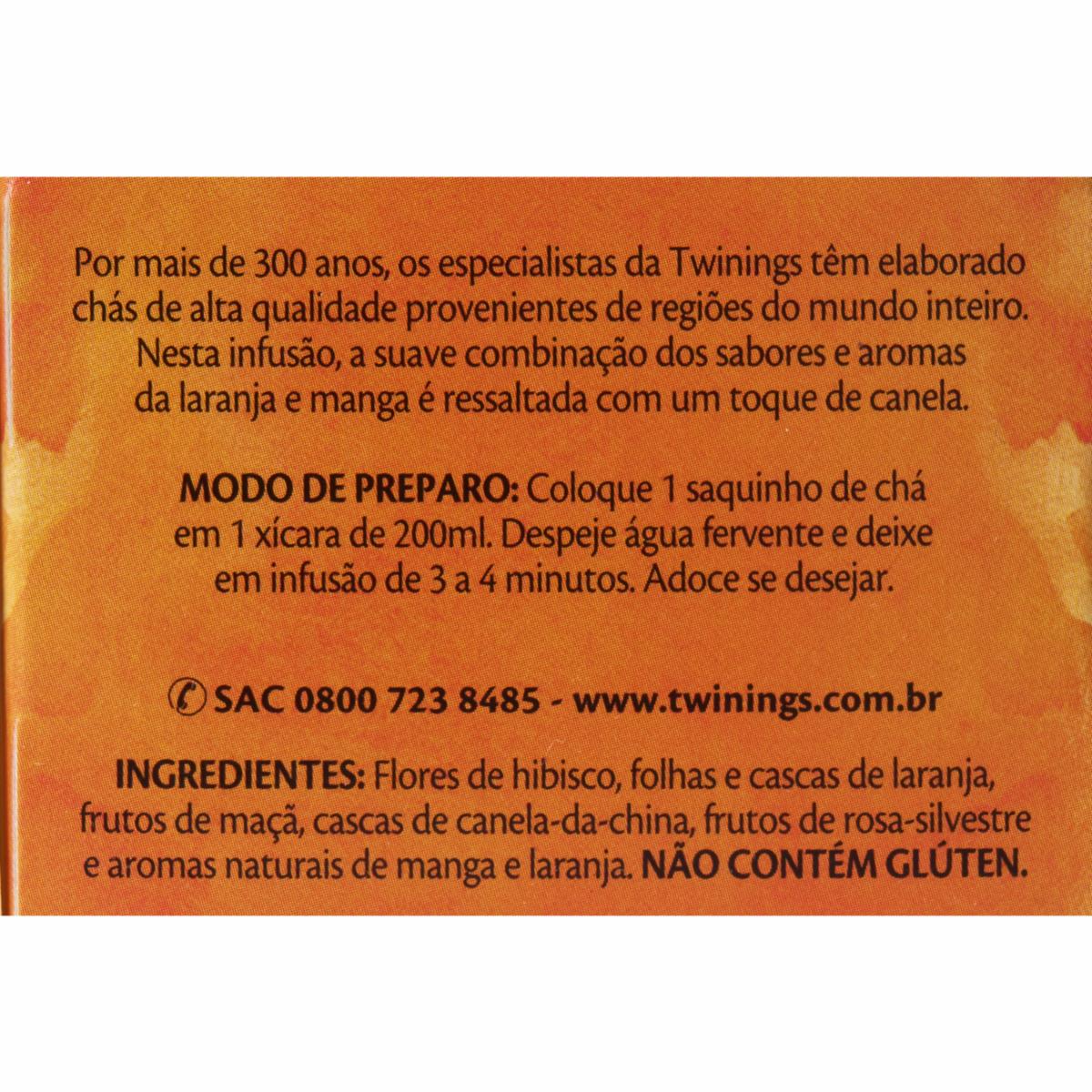 - La Infusión de Frutas sabor Naranja, Mango y Canela TWININGS, en bolsitas de 18 g, ofrece una mezcla exótica y aromática