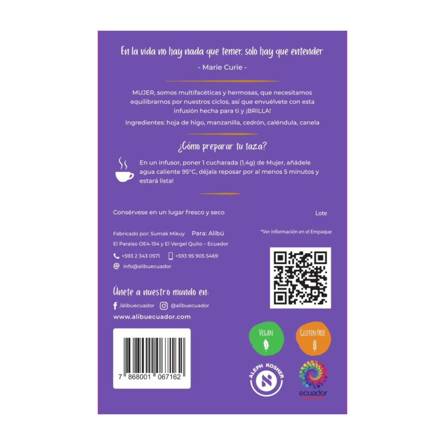 - La infusión combina una selección de hierbas aromáticas que apoyan el bienestar femenino. Su fórmula está diseñada para ofrecer una experiencia reconfortante y beneficiosa para el cuerpo y la mente