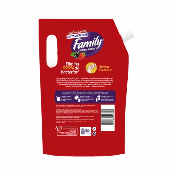 • El Nuevo Jabón Liquido Family Antibacterial Fragancia Frutos Rojos, Elimina El 99