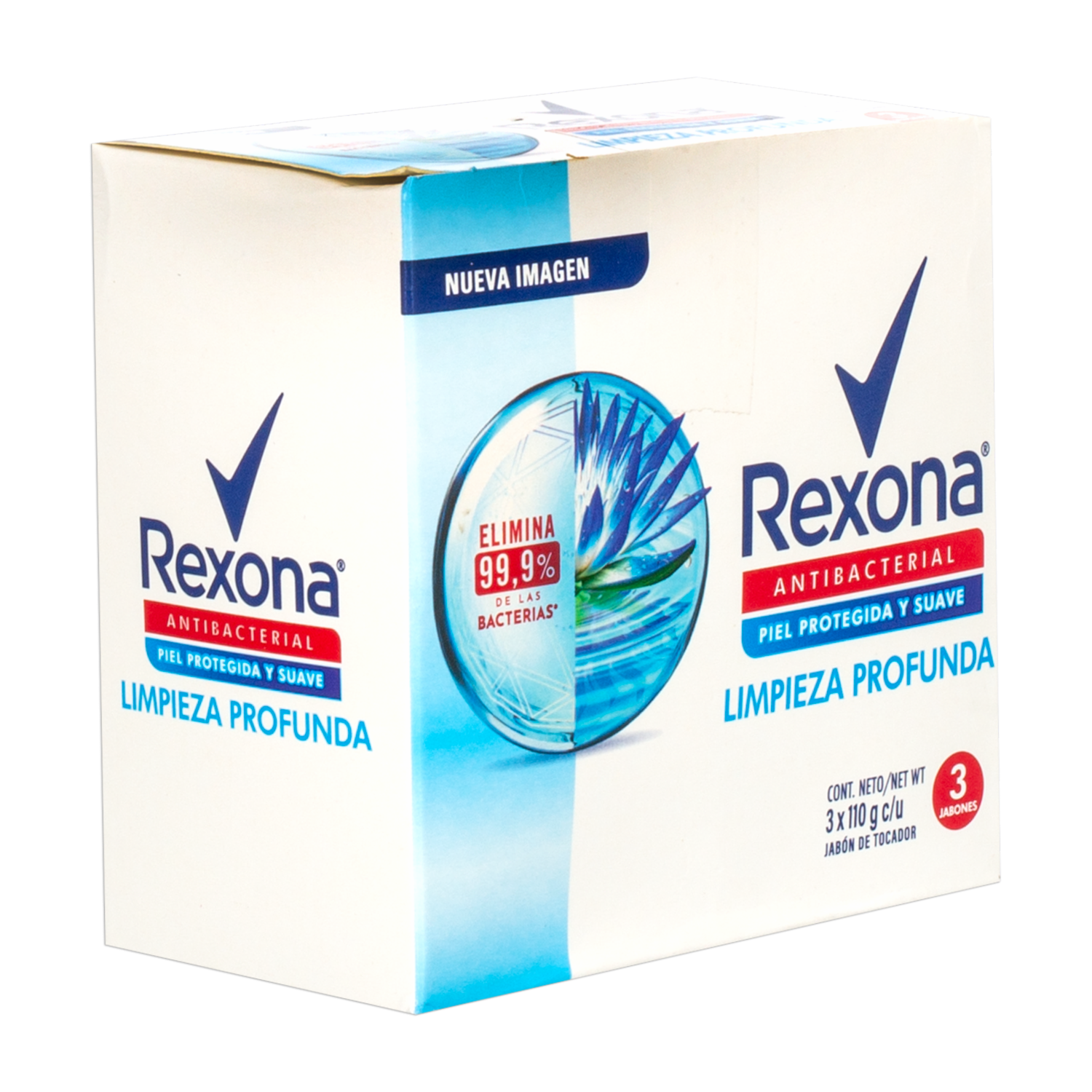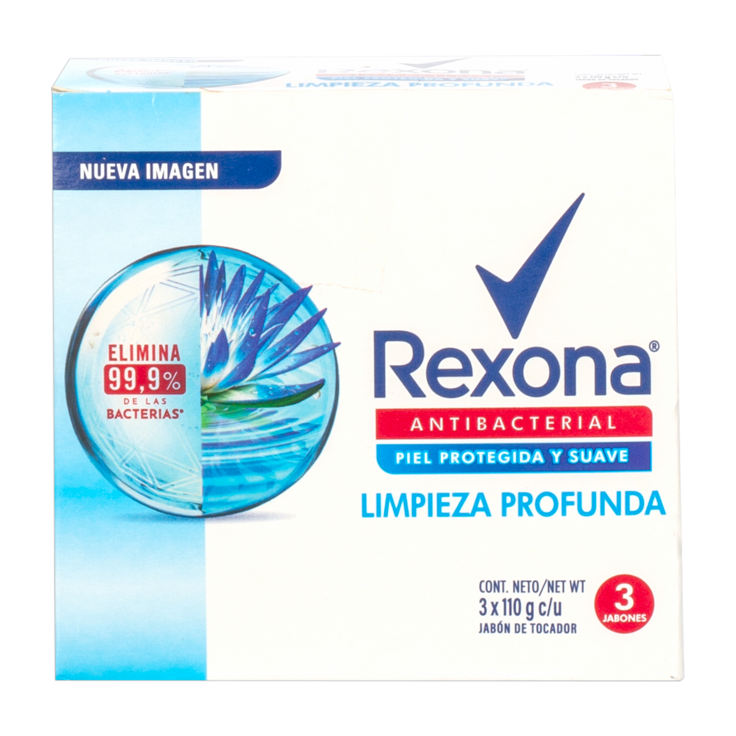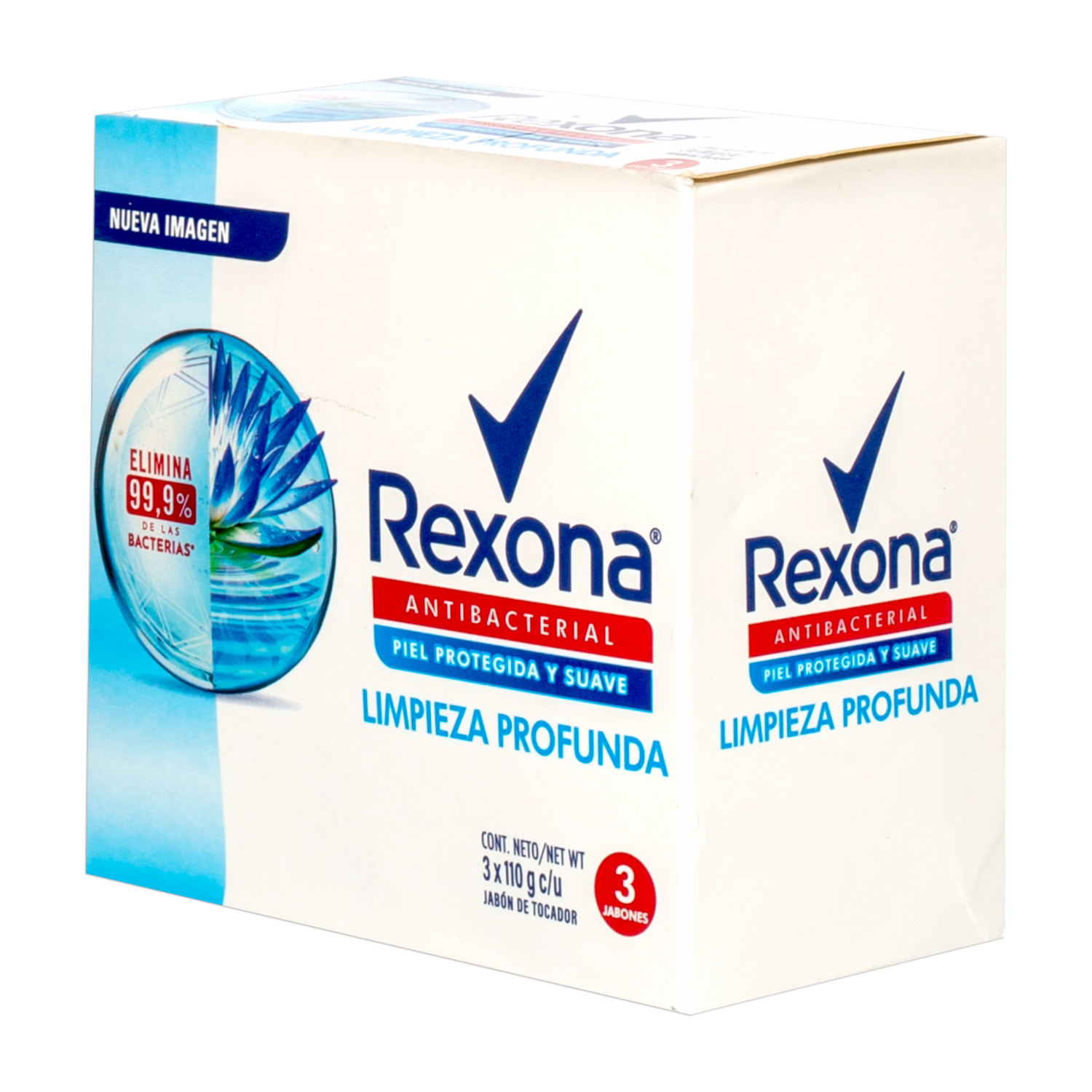 - El jabón en barra antibacterial Limpieza Profunda de Rexona está especialmente formulado para ofrecer una limpieza profunda y eliminar las bacterias presentes en la piel. Cada paquete incluye tres barras de jabón de 110 g cada una, lo que garantiza un suministro prolongado para el cuidado diario de toda la familia