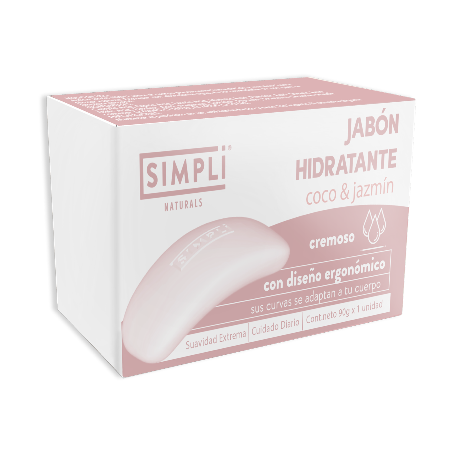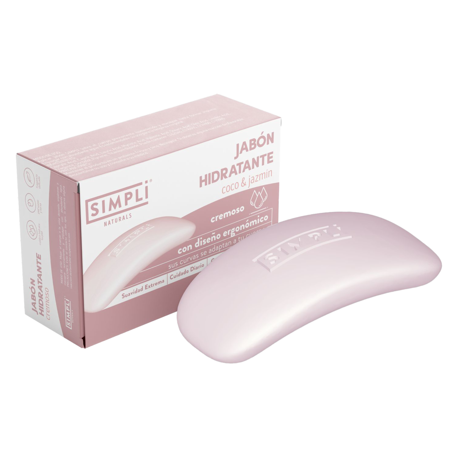 - El Jabón en Barra Cremoso Hidratante Coco y Jazmín SIMPLI 90 g limpia suavemente mientras hidrata la piel, dejándola suave y perfumada
