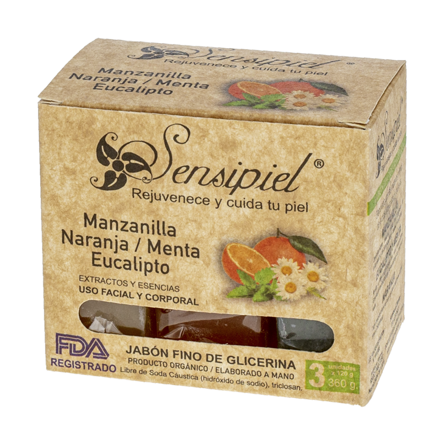 Jabón En Barra Manzana Menta Naranja SENSIPIEL 360 G