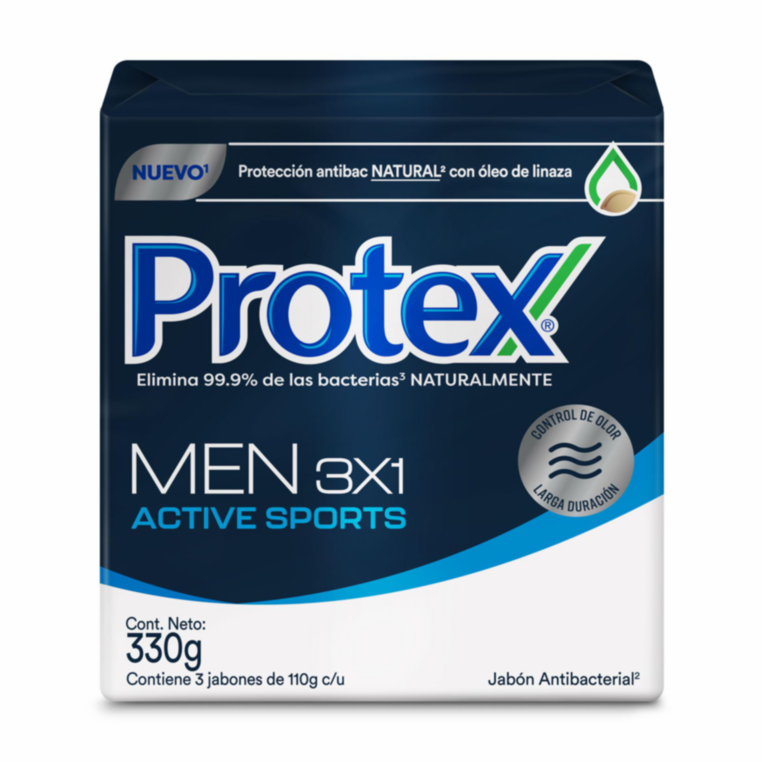Jabón En Barra Men Active Sport Protección Antibacterial Natural PROTEX 3 X 110 G