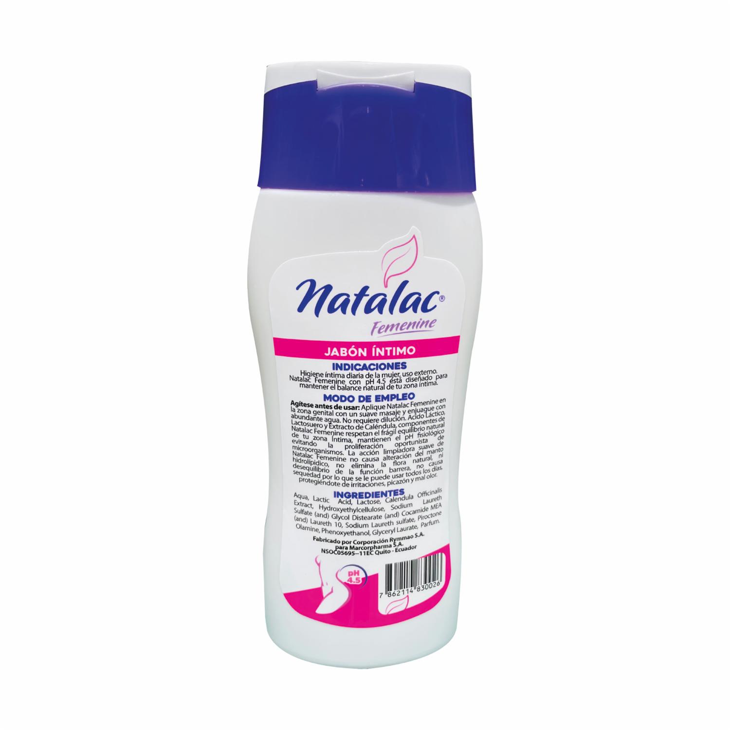 Jabón Íntimo Femenine Con Ácido Láctico Y Lactosuero NATALÁC 220 Ml – NATALAC. Disponible en nuestros locales. Precio y stock pueden variar según la tienda.