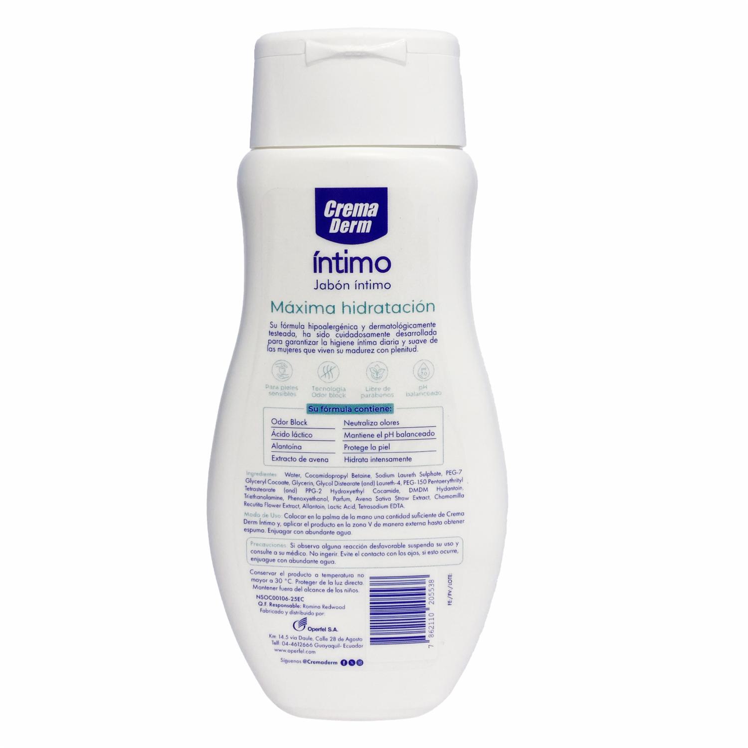 consultando preciosJabón Íntimo Máxima Hidratación CREMA DERM 250 ml – CREMA DERM. Disponible en nuestros locales. Precio y stock pueden variar según la tienda.