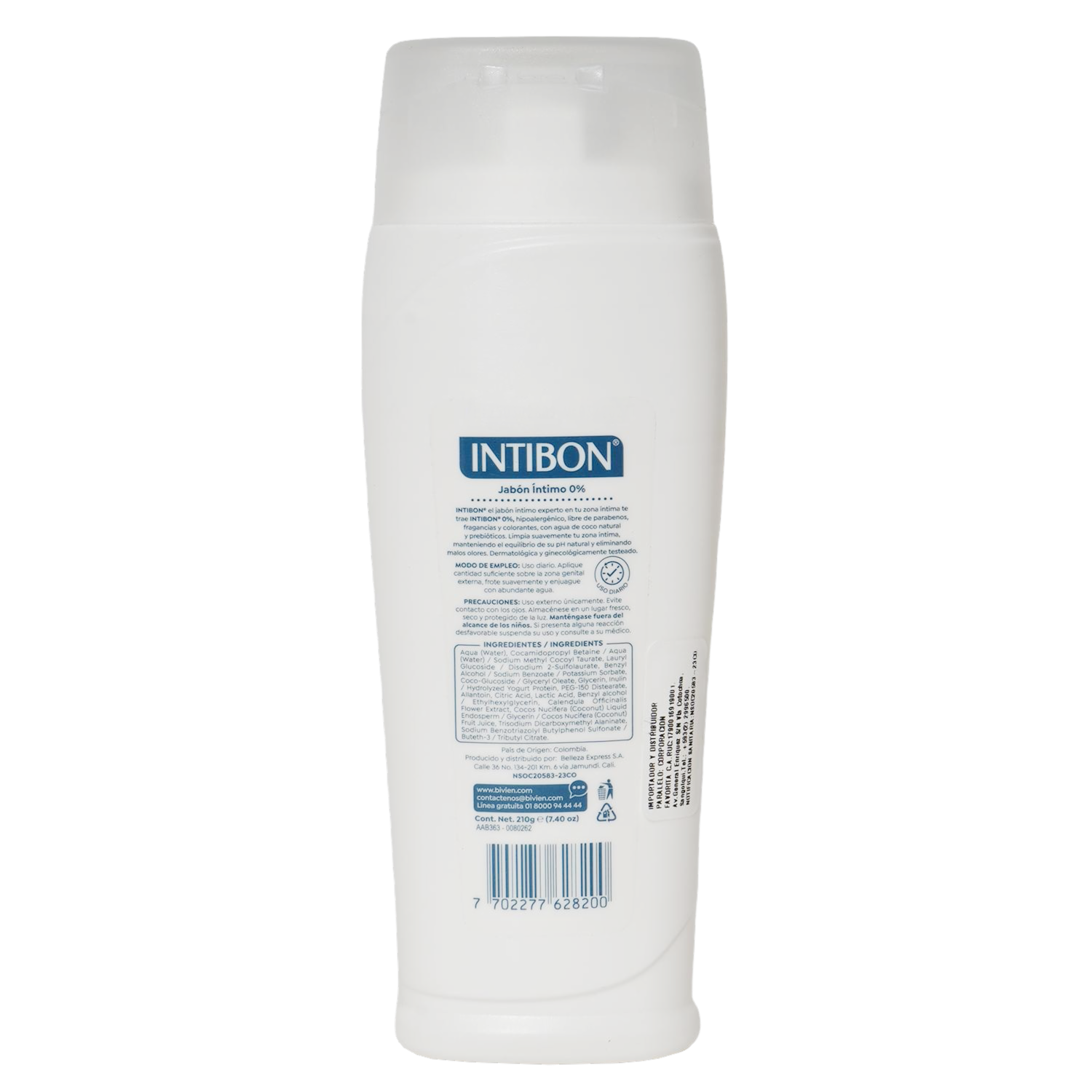 Jabón Íntimo Para Dama Sin Fragancias Sin Colorantes Ni Parabenos Hipoalergénico INTIBON 210 G