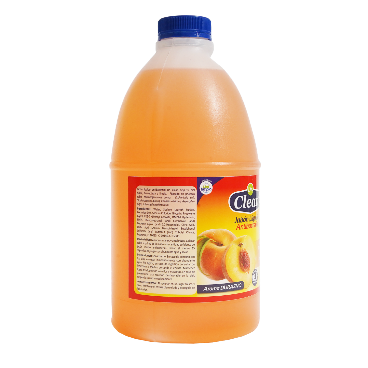- Formulado con extracto de durazno, este jabón líquido proporciona una limpieza suave y efectiva que deja la piel fresca, suave y delicadamente perfumada. Éste jabón líquido de DR. CLEAN ofrece una experiencia de lavado indulgente. El aroma suave y reconfortante del durazno añade un toque de lujo a tu rutina diaria de cuidado corporal. Además es antibacterial, eliminando las bacterias