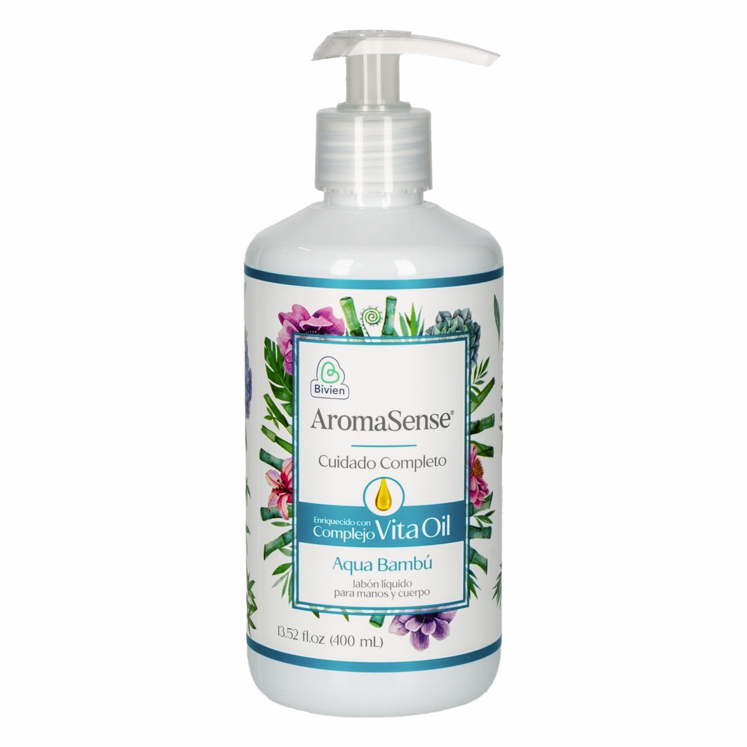 Jabón Líquido Aqua Bambú AROMASENSE 400 Ml – AROMASENSE. Disponible en nuestros locales. Precio y stock pueden variar según la tienda.