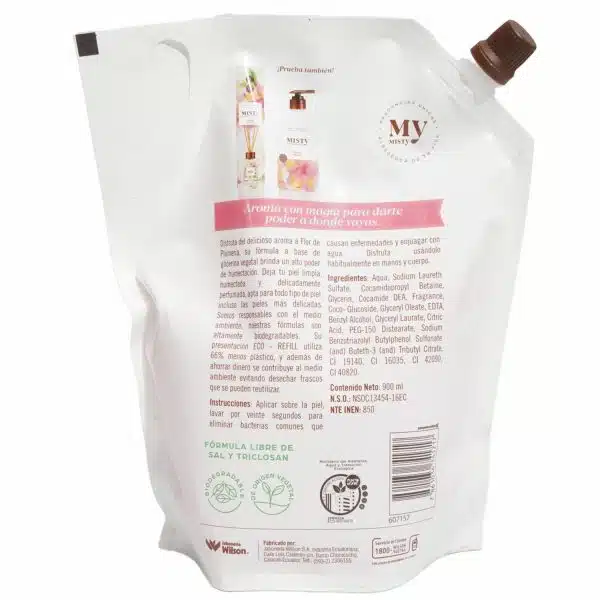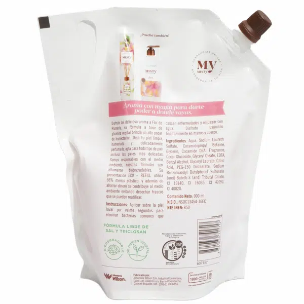 Jabón Líquido Humectante Flor De Plumería MISTY 900 ML