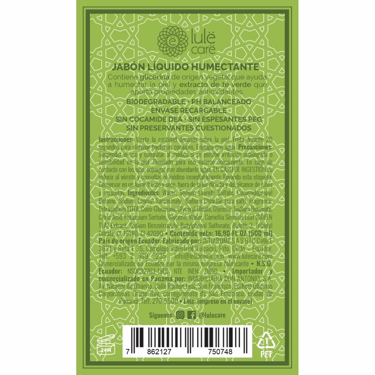 Jabón Líquido Humectante Fragancia Refreshing Verbena LULË 500 Ml