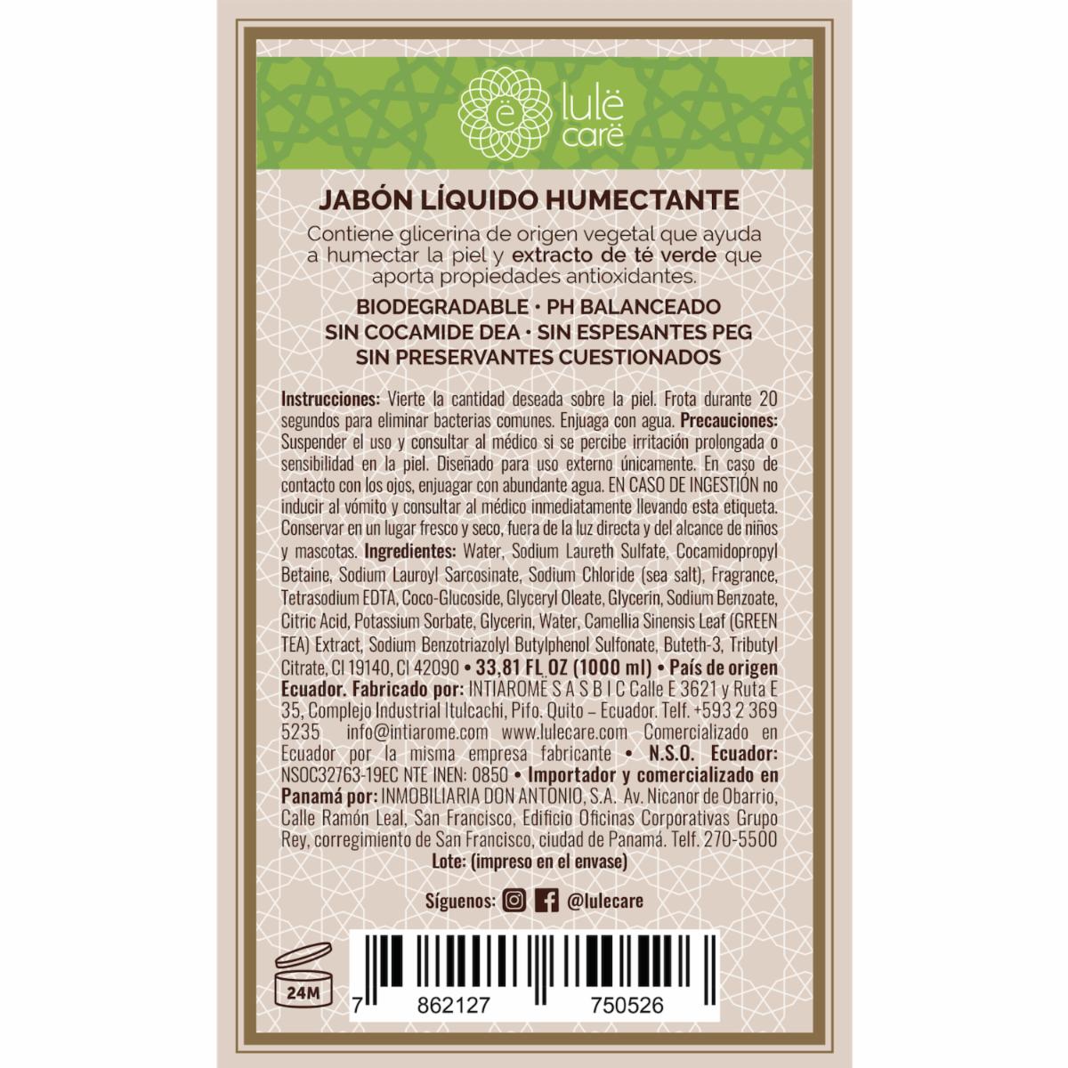 Jabón Líquido Humectante Fragancia Refreshing Verbena Refill LULË 1000 Ml