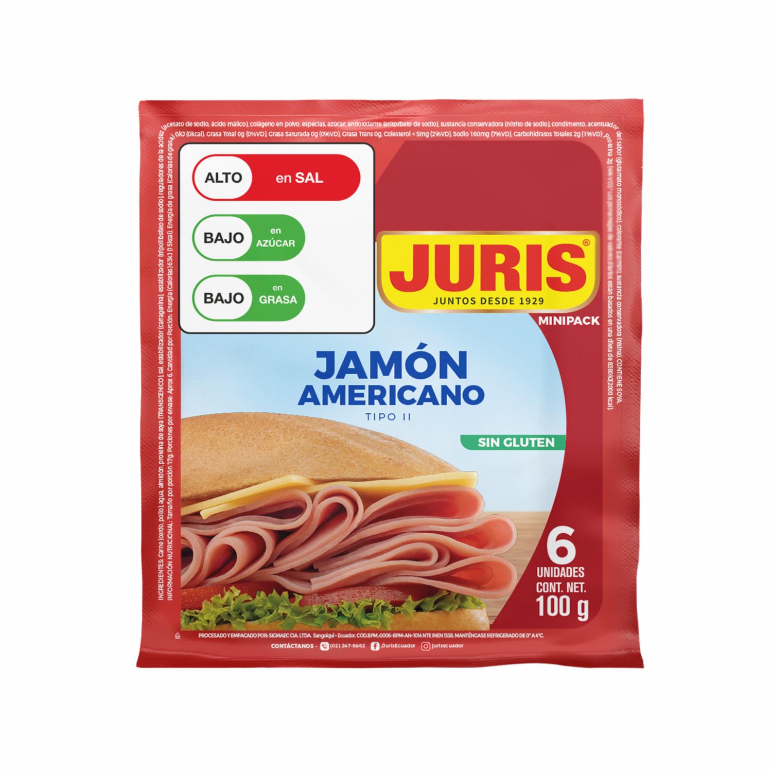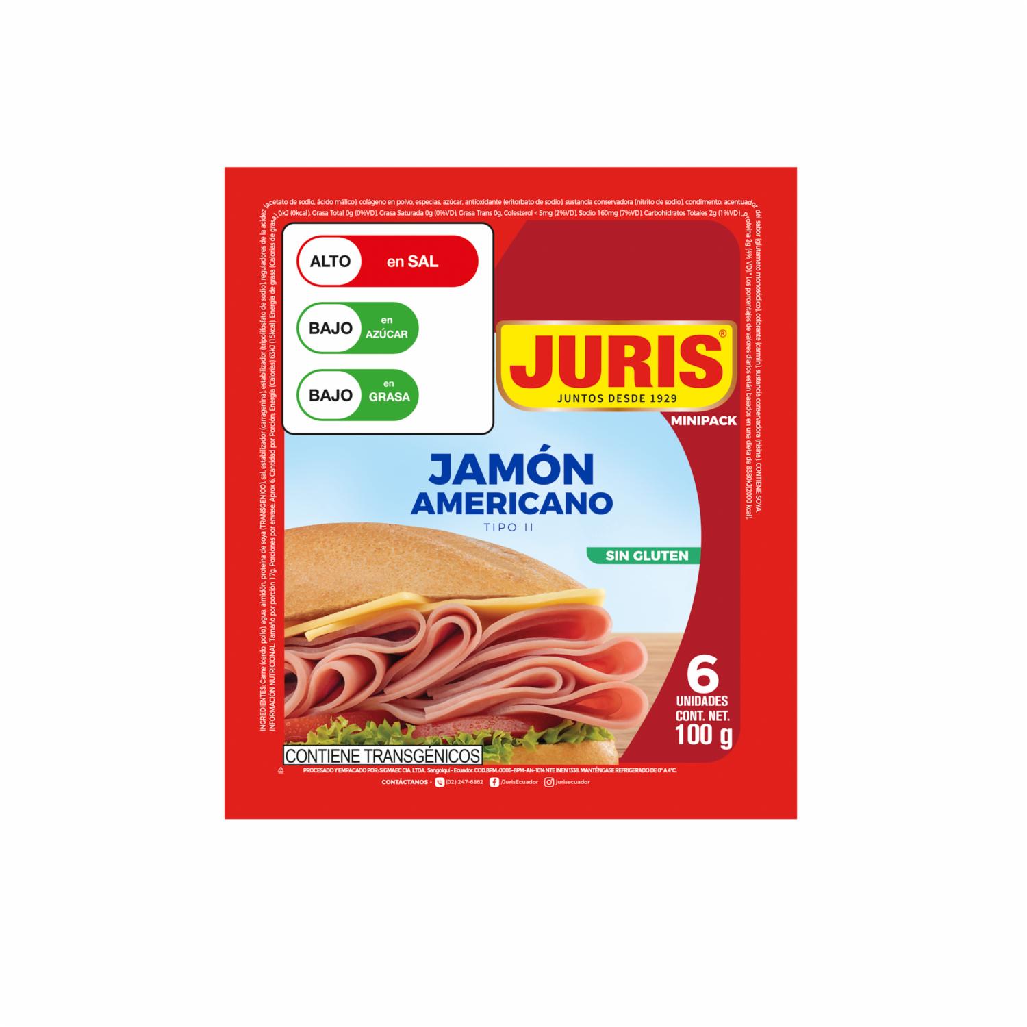 consultando preciosJamón Americano Tipo II JURIS Mini Pack 100 G – JURIS. Disponible en nuestros locales. Precio y stock pueden variar según la tienda.