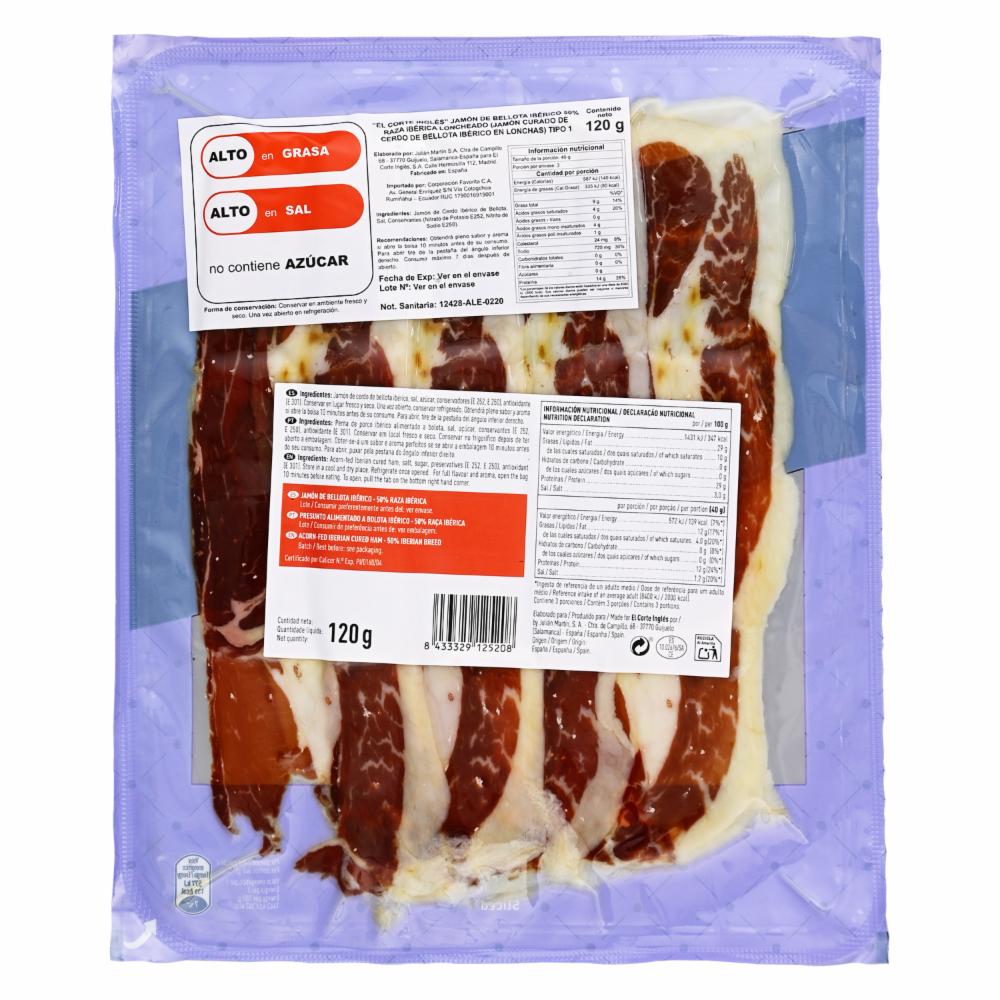 Jamón De Bellota 50% Raza Ibérica EL CORTE INGLÉS 100 G