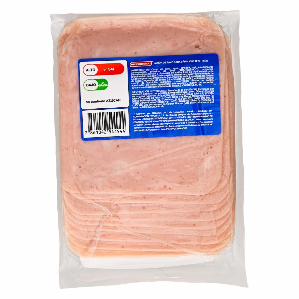 Jamón De Pavo Para Sanduche SUPERMAXI Termoempacado
