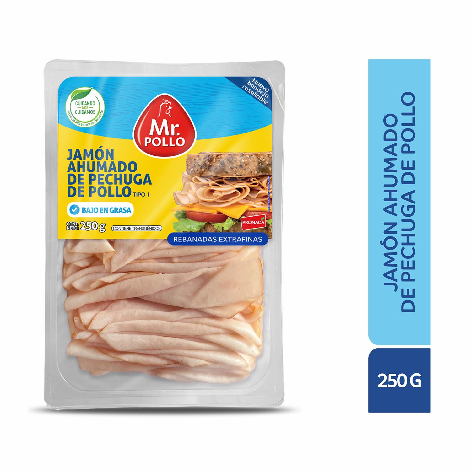 Jamón De Pechuga Ahumado De Pollo Rebanadas Extrafinas MR. POLLO 250 G
