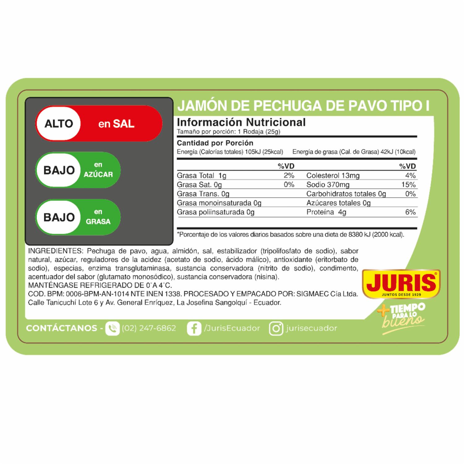 Jamón De Pechuga De Pavo Tipo I JURIS 200 G – JURIS. Disponible en nuestros locales. Precio y stock pueden variar según la tienda.