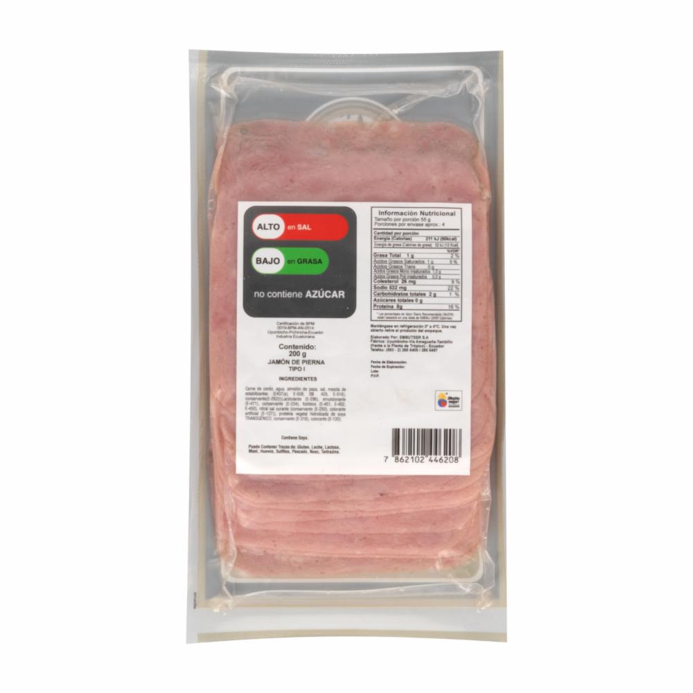 Jamón de pierna, suave, jugoso y de sabor delicado. Perfecto para sándwiches, bocadillos o como acompañante en tus comidas. Ideal para quienes buscan una opción deliciosa y versátil, con una textura tierna y un sabor inconfundible