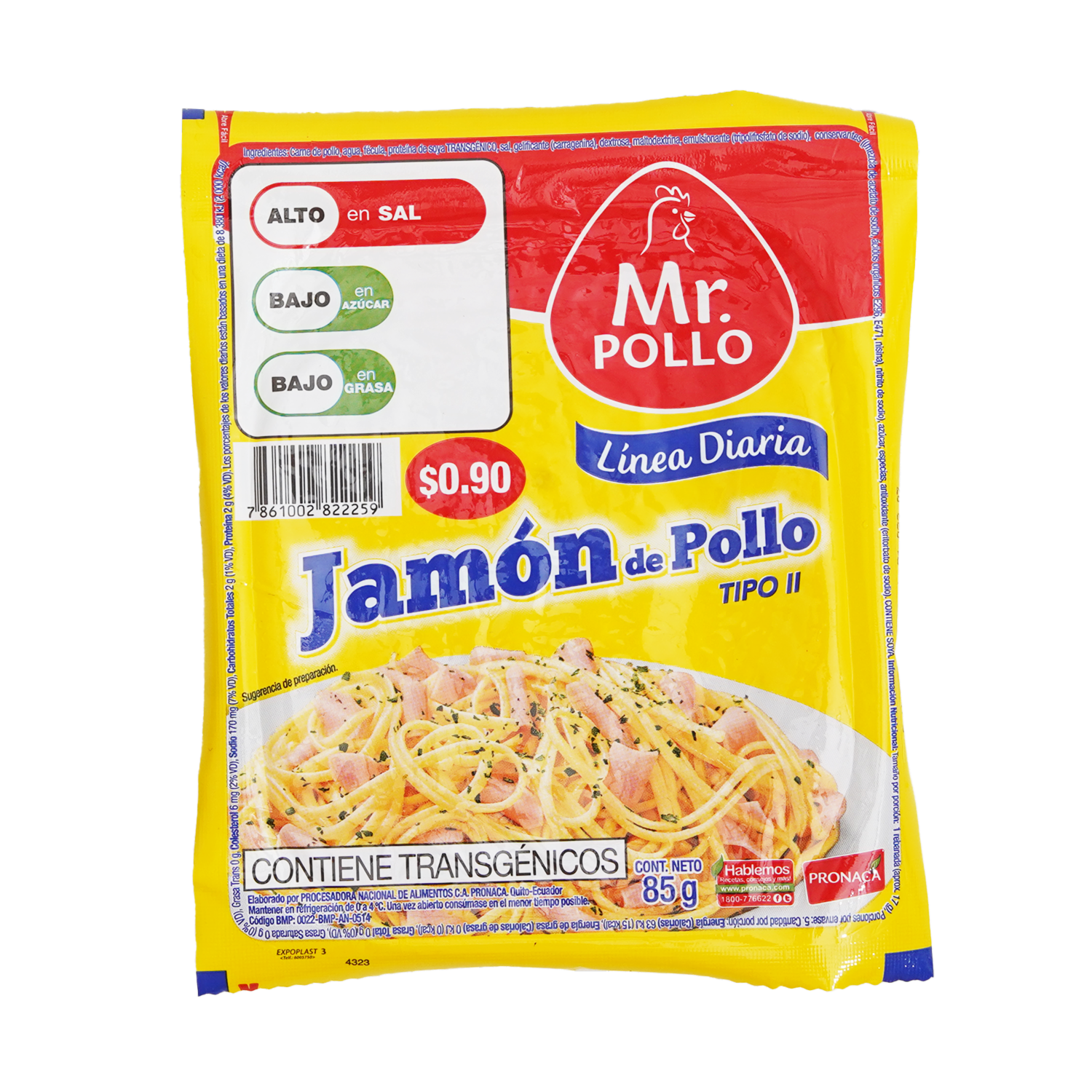 Jamón De Pollo Línea Diaria Tipo II MR. POLLO 85 G – MR. POLLO. Disponible en nuestros locales. Precio y stock pueden variar según la tienda.