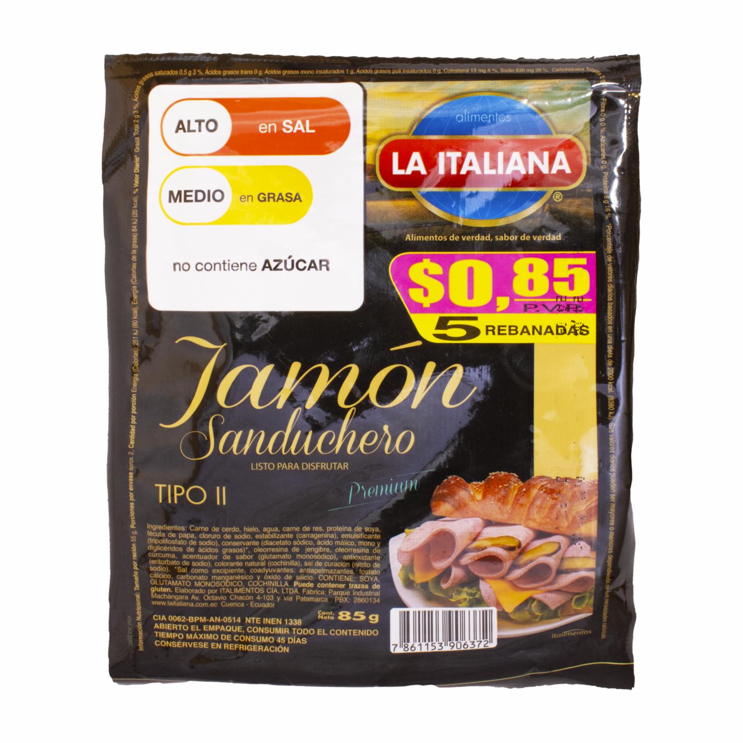 Jamón Sanduchero Premium Tipo II LA ITALIANA 85 G
