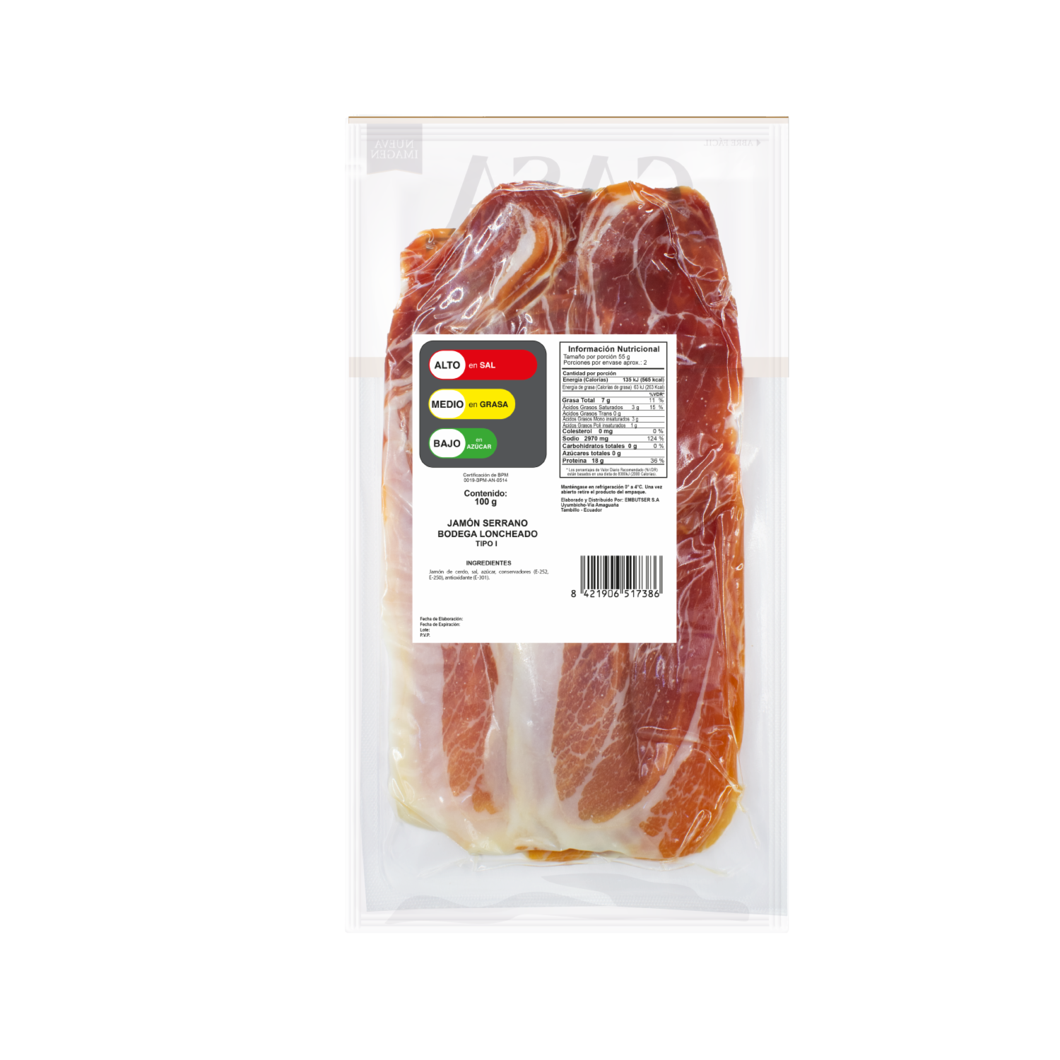 El Jamón Serrano Bodega Loncheado es una opción deliciosa y versátil, elaborado con jamón de cerdo y conservadores. Con un sabor inconfundible y una textura ideal para sánduches, bocaditos o tablas frías, es perfecto para cualquier ocasión
