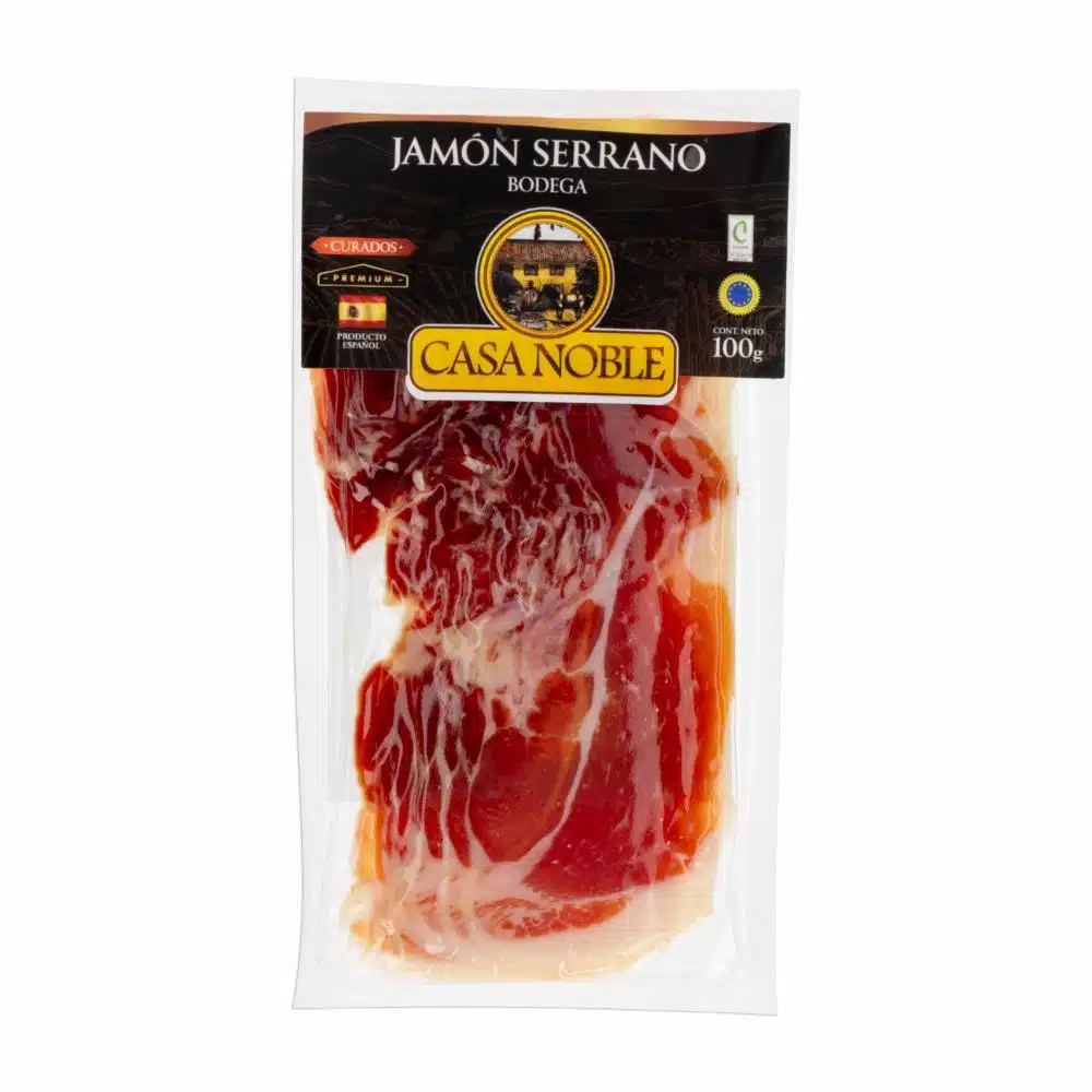 Jamón Serrano Curados Bodega CASA NOBLE 100 G – CASA NOBLE. Disponible en nuestros locales. Precio y stock pueden variar según la tienda.