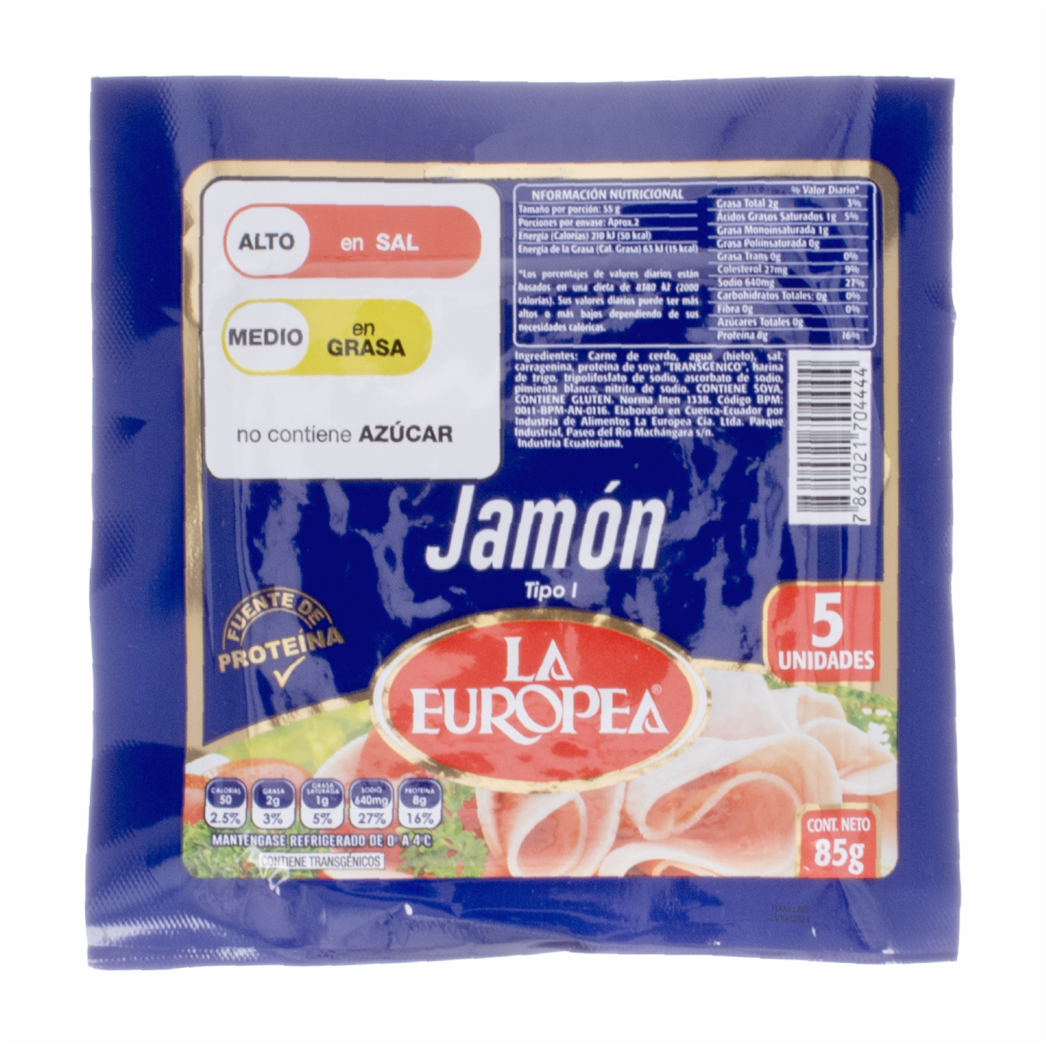 consultando preciosJamón Tipo I LA EUROPEA 85 G – LA EUROPEA. Disponible en nuestros locales. Precio y stock pueden variar según la tienda.