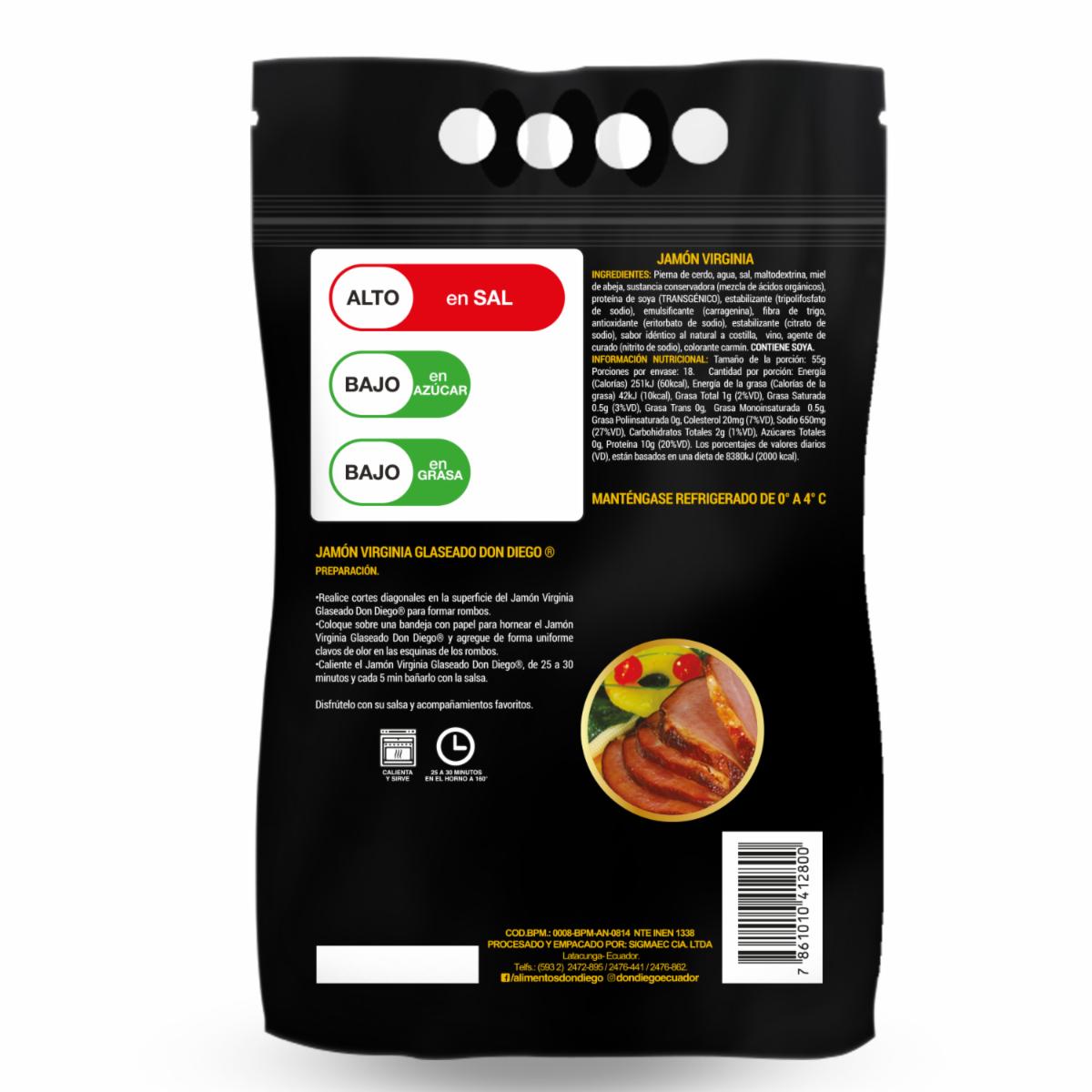 Jamón Virginia Glaseado Navideño DON DIEGO 1000 G