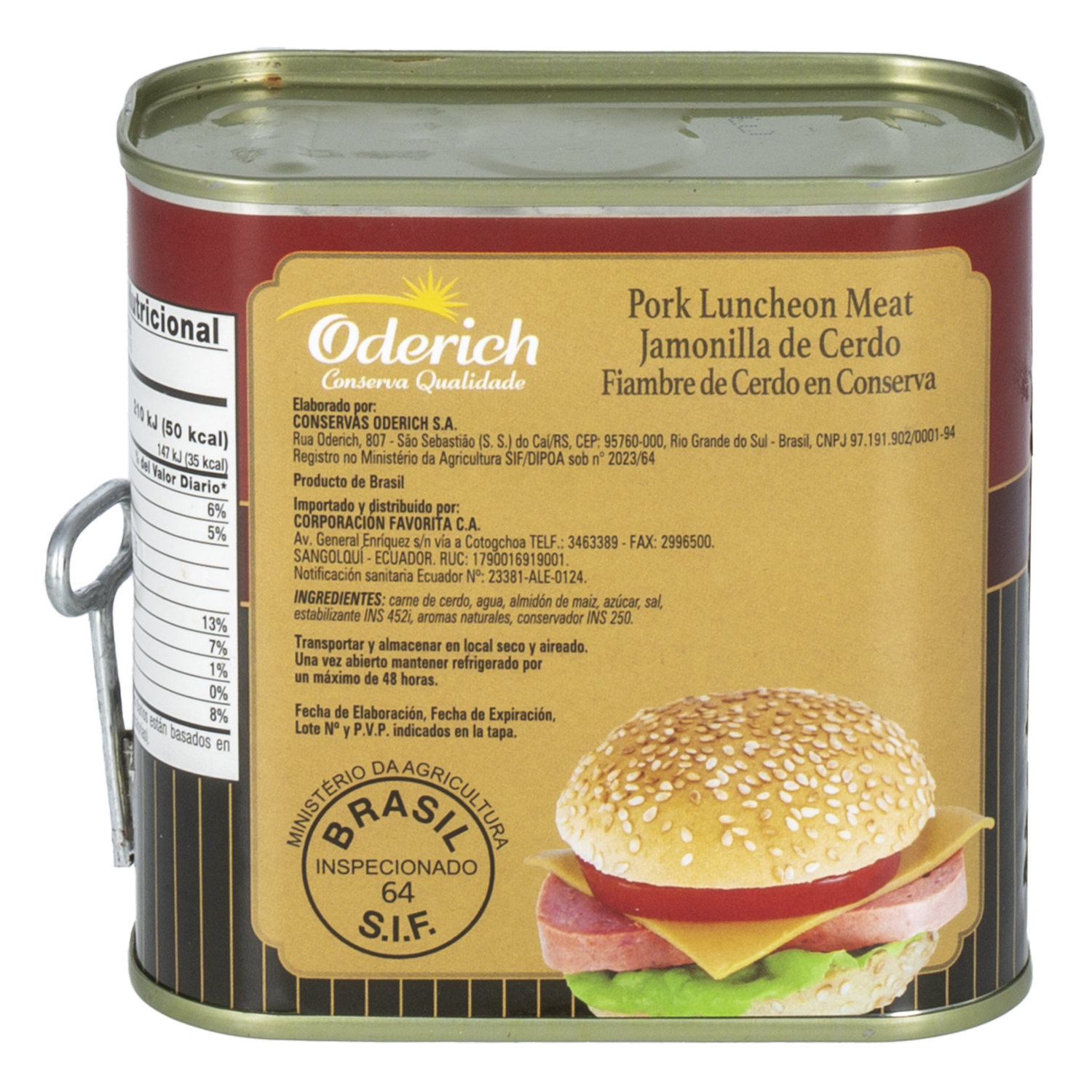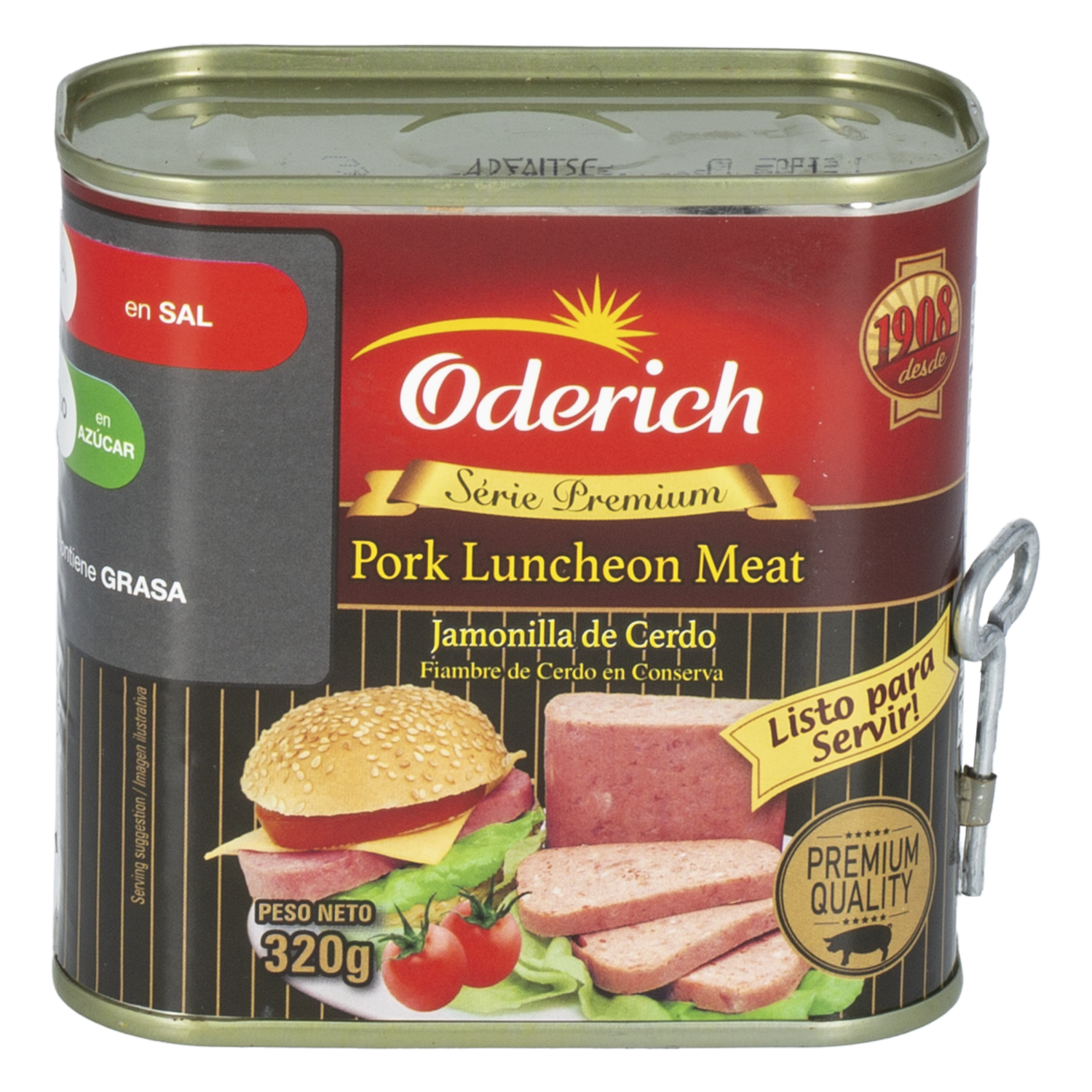 - Jamonilla de cerdo Premium ODERICH enlatada 320 g, elaborada con carne de cerdo y lista para consumir. Ideal para sándwiches, desayunos y recetas rápidas, en práctica presentación en conserva de fácil almacenamiento