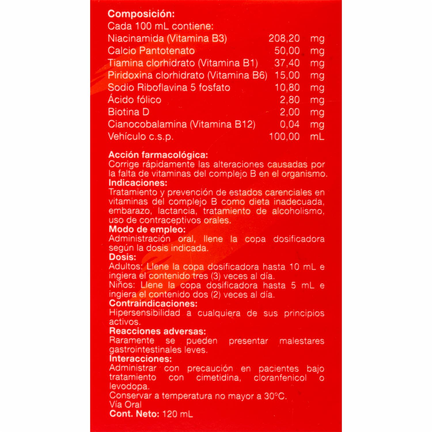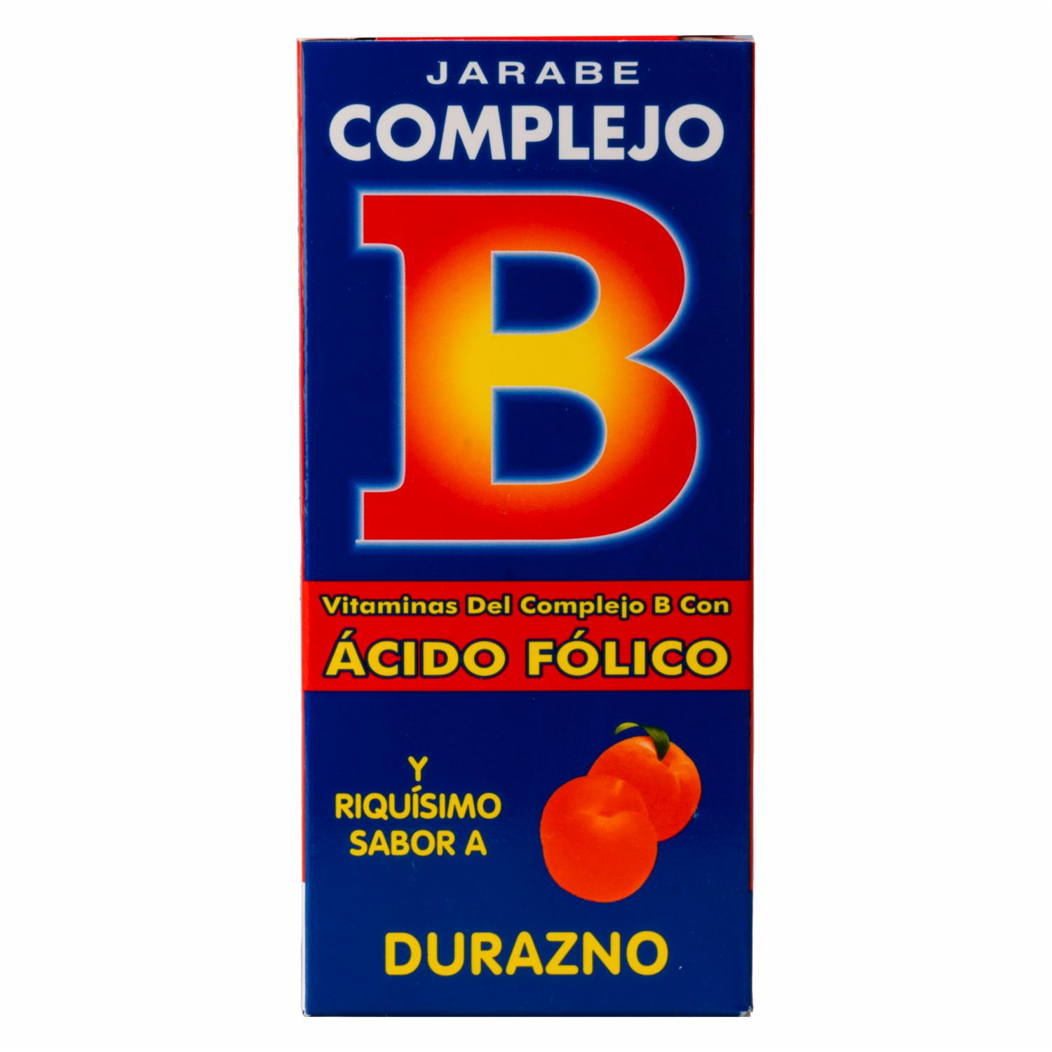 - Jarabe con vitaminas del complejo B con ácido fólico y sabor a durazno