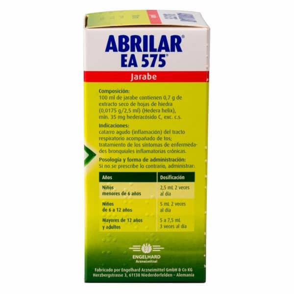 El jarabe para la tos ABRILAR tiene propiedades expectorantes y mucolíticas, lo que significa que ayuda a eliminar la mucosidad de las vías respiratorias y a aliviar la tos. También tiene propiedades antiinflamatorias y analgésicas, lo que puede reducir la inflamación y el dolor asociados con las infecciones respiratorias