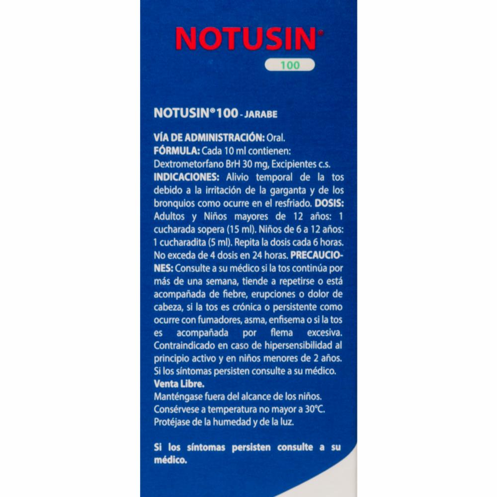 - Notusin 100 alivia la tos seca provocada por la irritación de la garganta y de los bronquios como ocurre en el refriado común