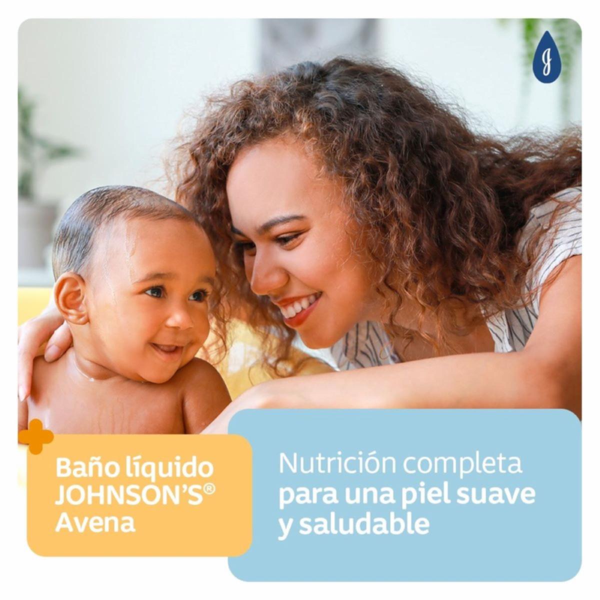 - El baño líquido JOHNSONS® Avena con extracto natural de avena es ideal para nutrir e hidratar la piel de tu bebé, evitando el resecamiento producido por el gateo