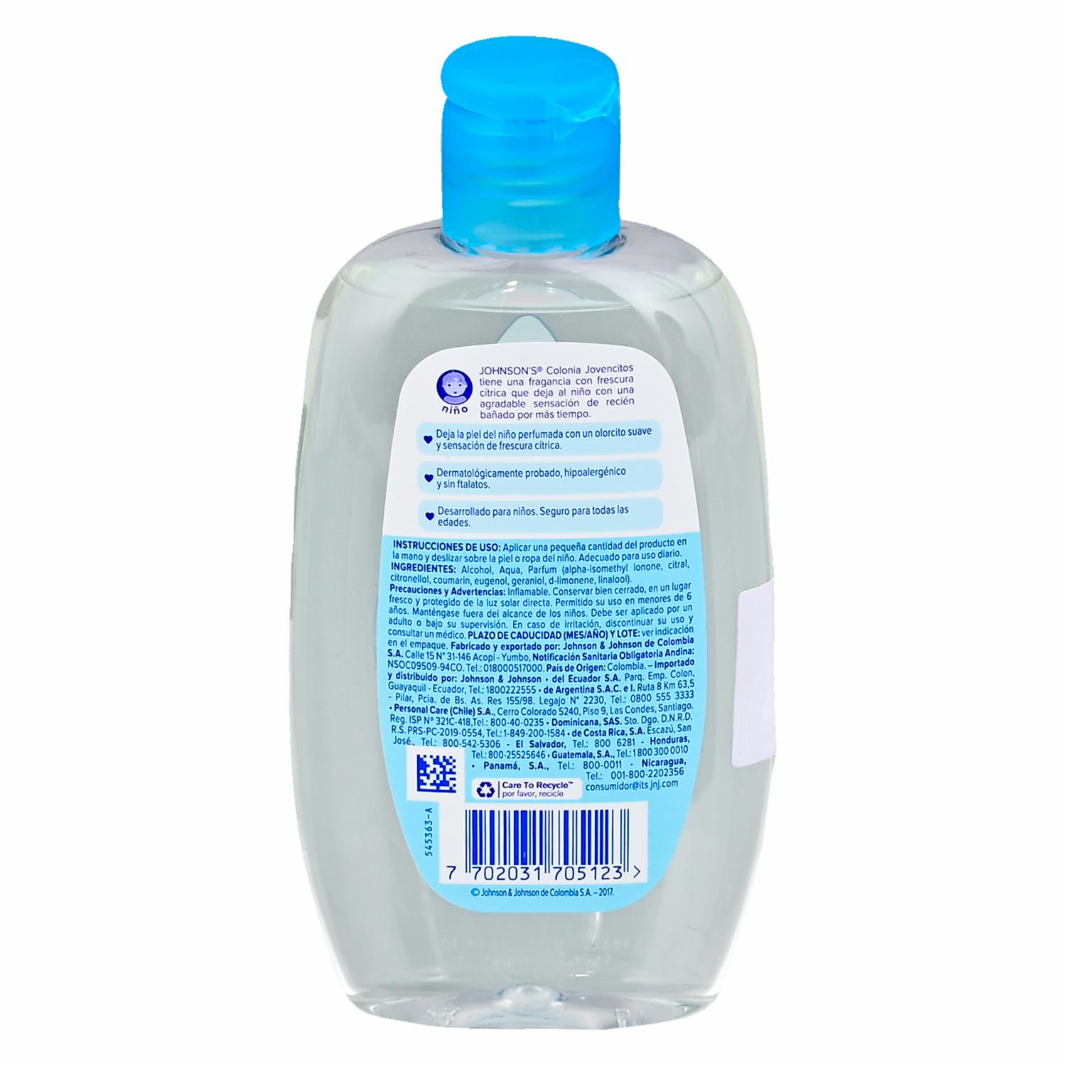 - La Colonia Infantil Jovencitos de JOHNSON´S BABY es un producto diseñado para niños y jóvenes. Sus principales propiedades son su suave fragancia, que no irrita la piel ni los ojos, y su fórmula hipoalergénica, que reduce el riesgo de alergias
