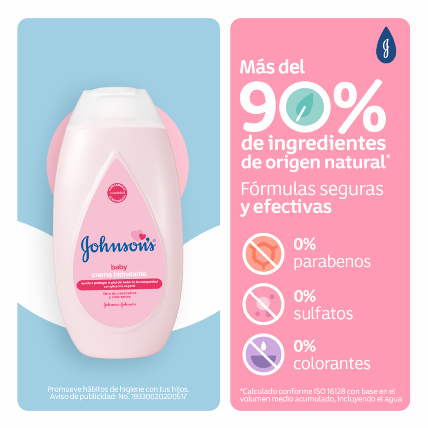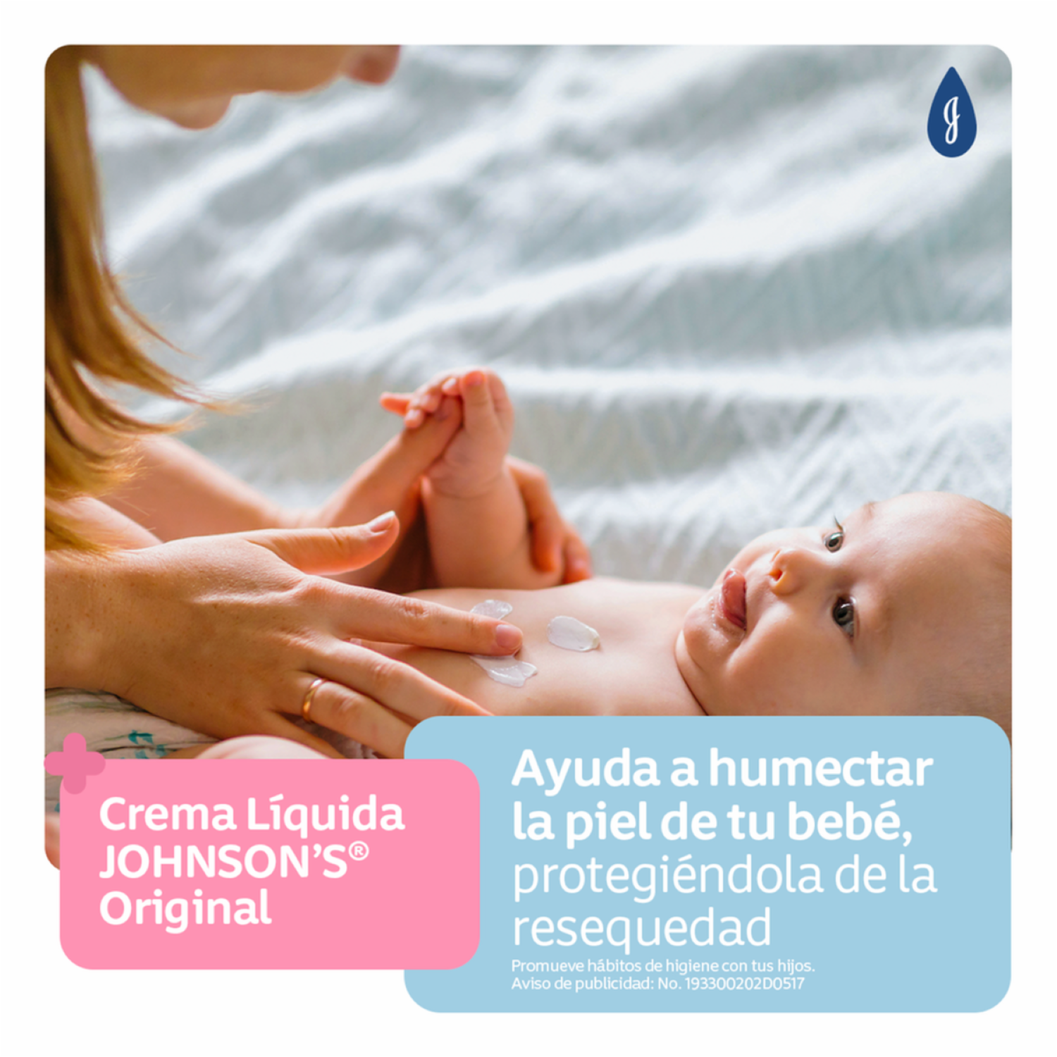 Crema Líquida JOHNSONS Original contiene glicerina vegetal, dejando la piel del bebé perfectamente suave y ayudando a protegerla de resequedad