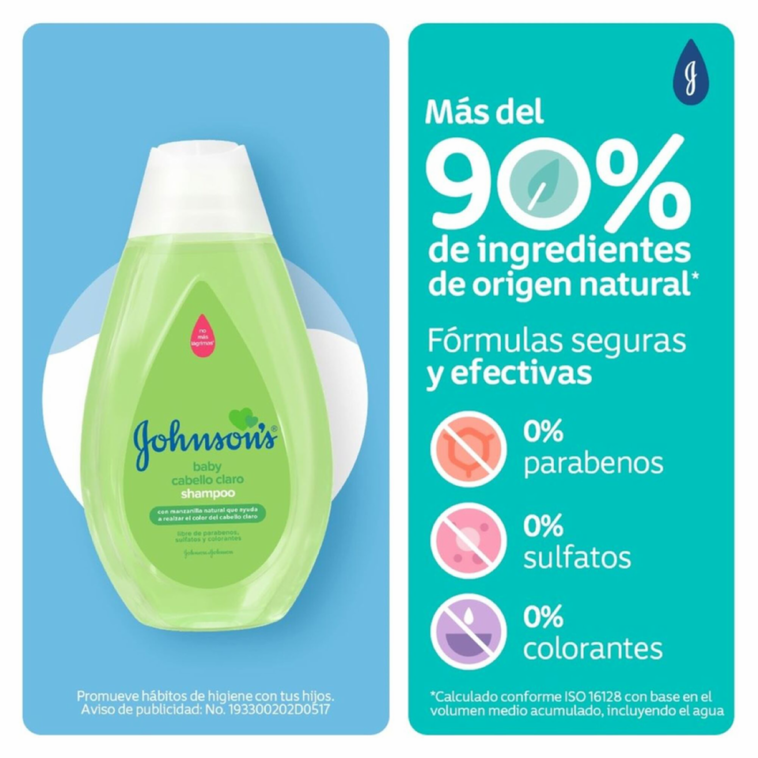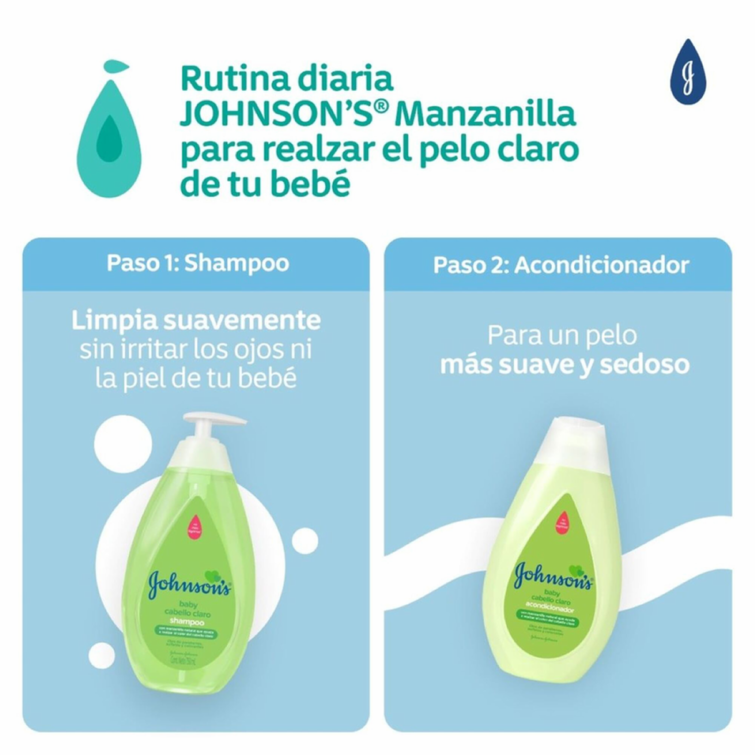 - Shampoo JOHNSON'S® Manzanilla posee manzanilla natural, que ayuda a realzar el color del pelo claro. Limpia suavemente y protege el pelo y cuero cabelludo del bebé