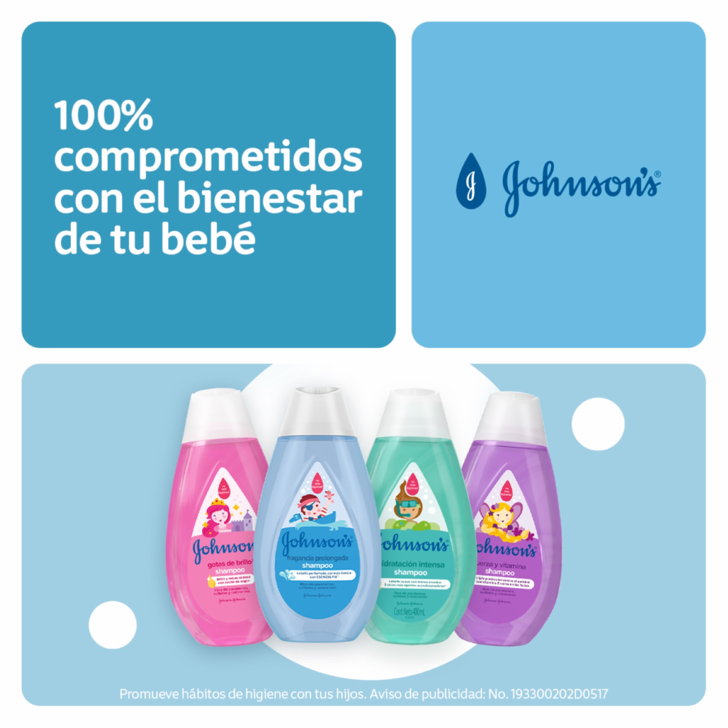 - El shampoo JOHNSON'S® fragancia prolongada enriquecido con vitamina E, deja el pelo de tu bebé suave y fácil de peinar. Además cuenta con Esencia FIX junto con aromas frutales y vitamina E que dejan una duradera y deliciosa fragancia en el pelo de tu bebé por más tiempo