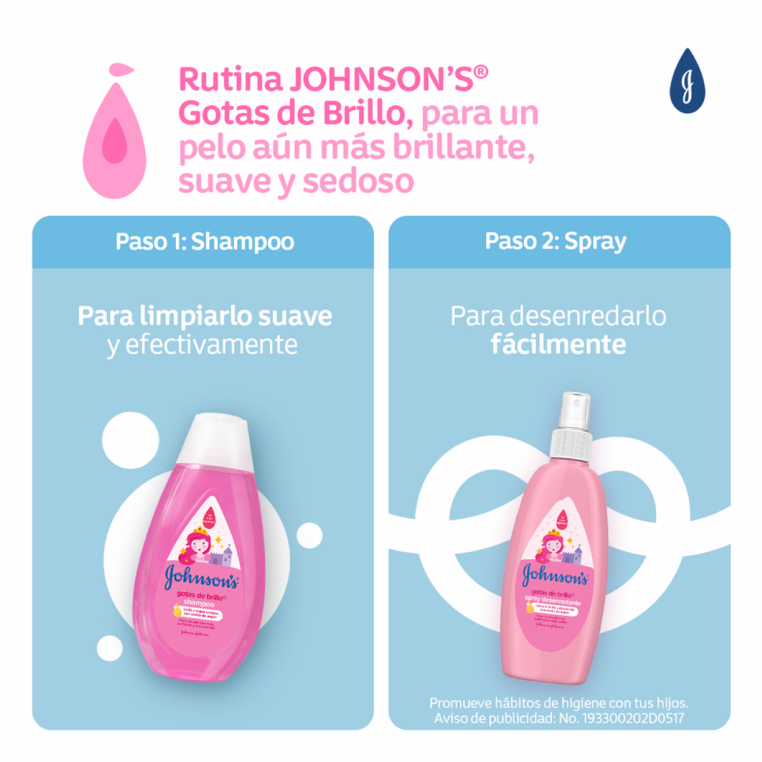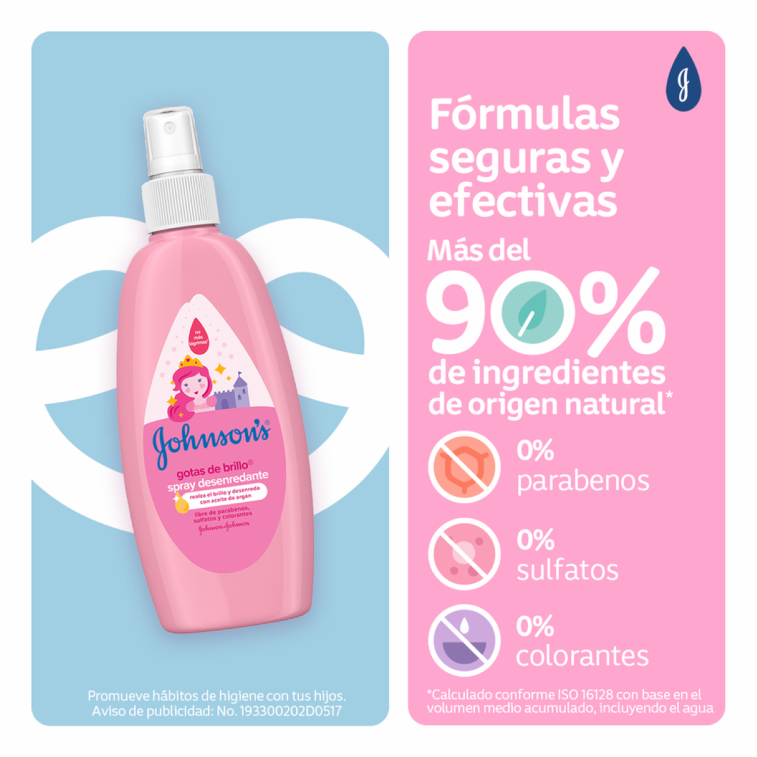 - Spray para Peinar JOHNSON?S Gotas de brillo contiene aceite de argán, que realza el brillo natural del pelo, desenredándolo y dejándolo con un toque sedoso