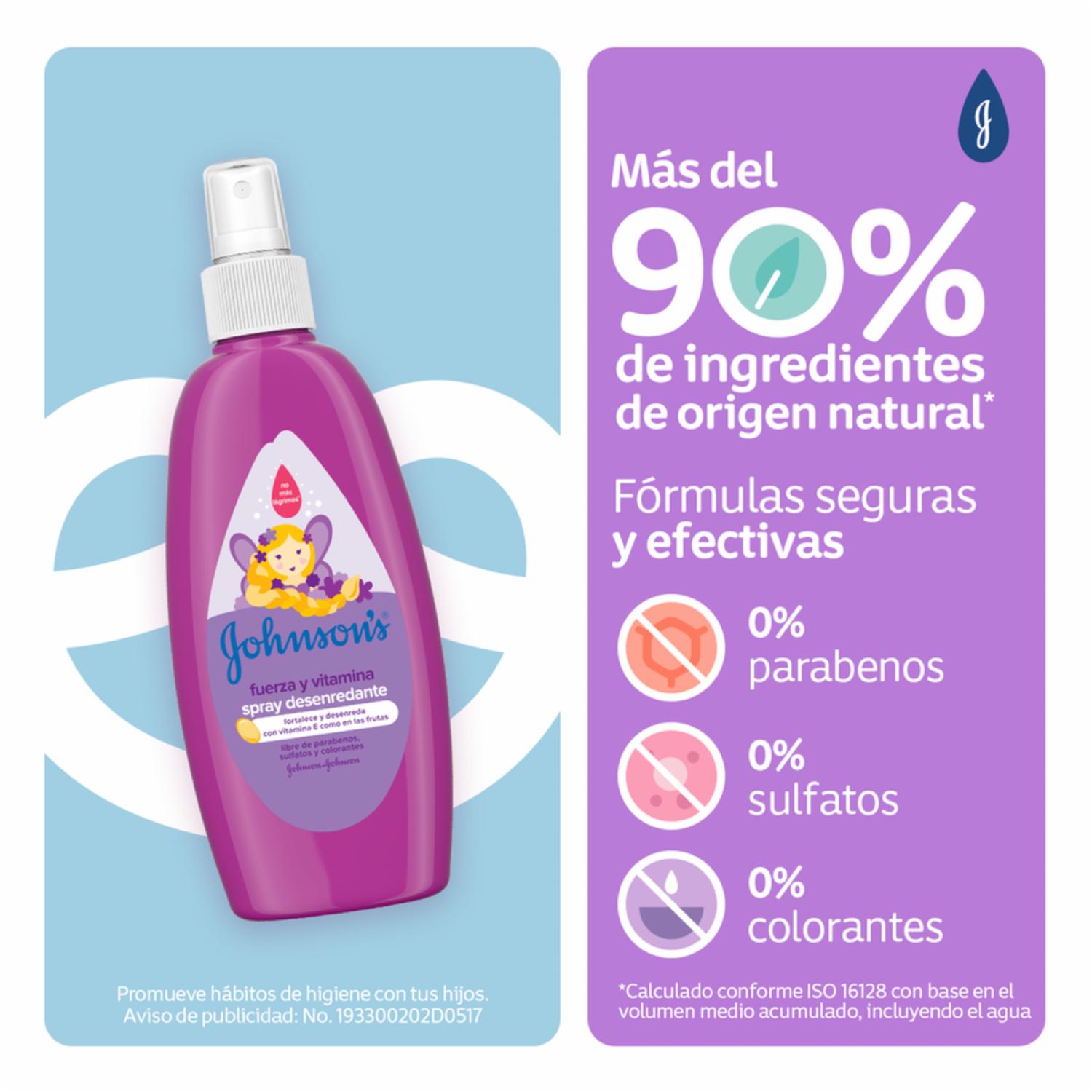 Spray para Peinar JOHNSON?S Fuerza y Vitamina fortalece y desenreda el pelo, ayudando a realzar la fuerza natural del pelo