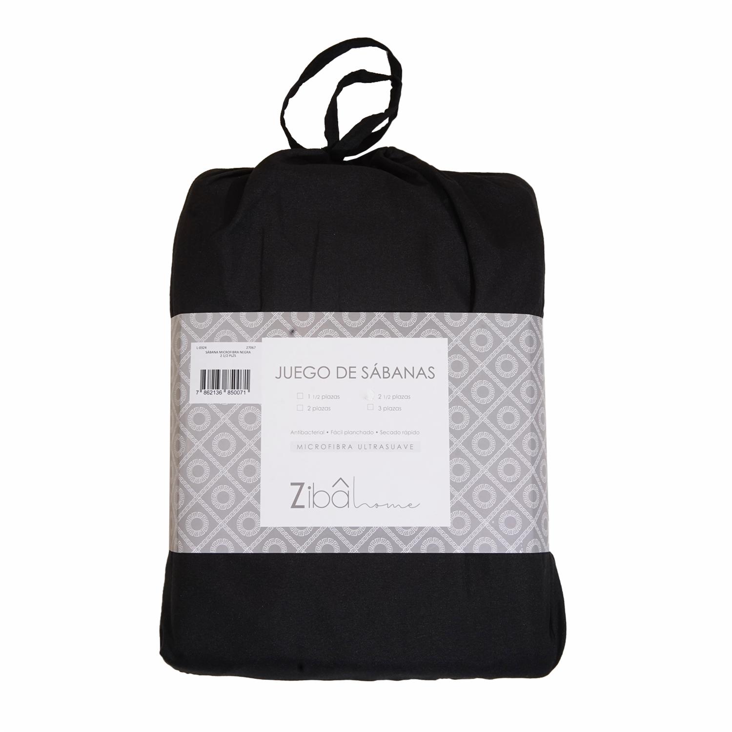 Juego De Sábanas Microfibra Negra ZIBA HOME 2 1/2 Plazas