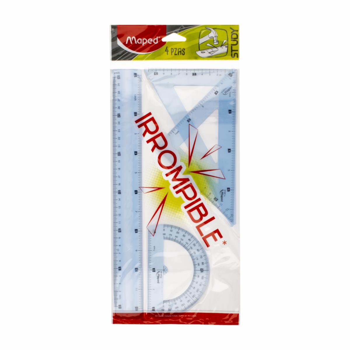 - ¡Explora el mundo de la geometría con el Set Geométrico Maped de 4 Piezas Irrompible! Este set incluye herramientas esenciales como regla, transportador, escuadra y compás, todas diseñadas para ser duraderas y resistentes