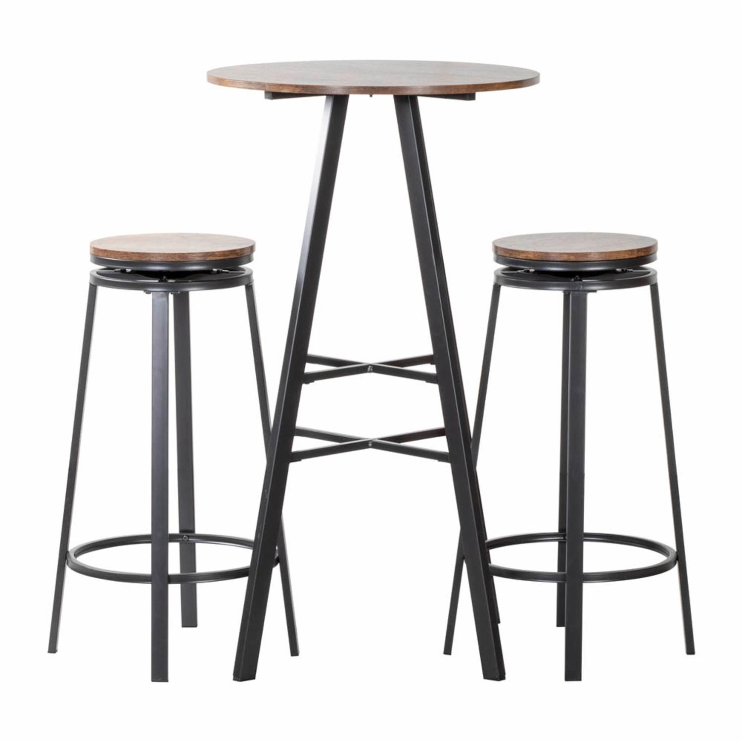 Juego Mesa Con 2 Bancos Frely Patas Altas FREE HOME Metal y Madera