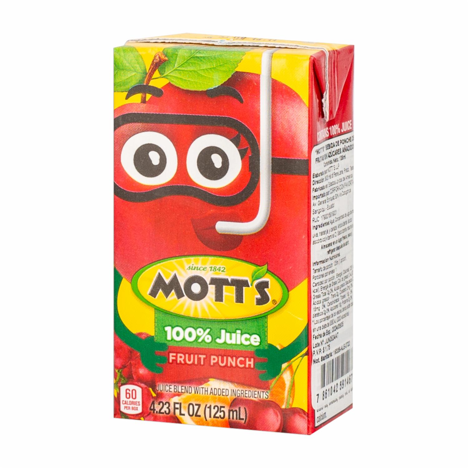 Jugo De Frutas Sin Azúcar Añadido MOTT’S 125 Ml – MOTTS. Disponible en nuestros locales. Precio y stock pueden variar según la tienda.
