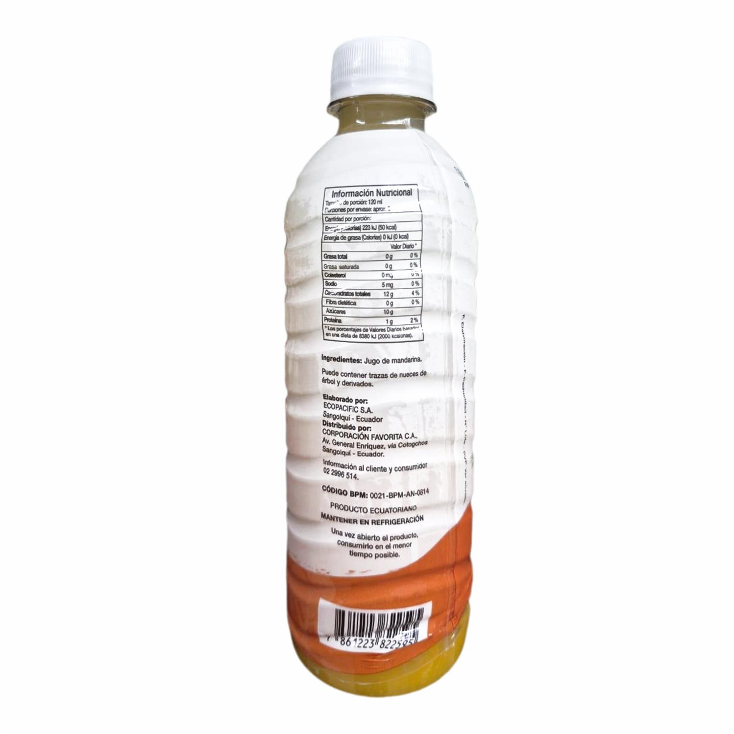 - La esencia pura de la mandarina en cada botella. Nuestro jugo es naturalmente fresco, sin aditivos ni colorantes artificiales. Repleto de antioxidantes para mantenerte vital. Disfrútalo bien frío para saborear la pureza de la fruta y refrescar tus momentos