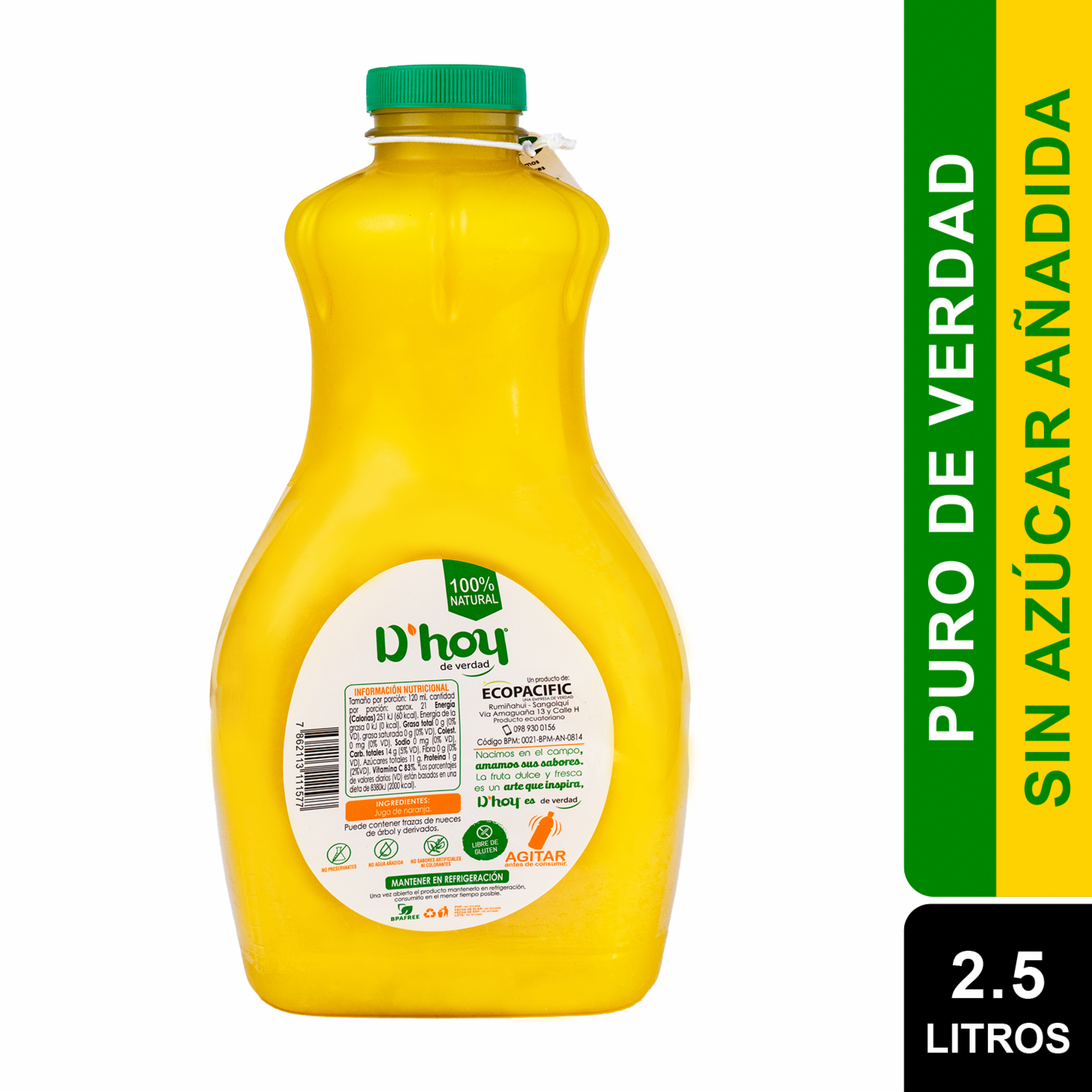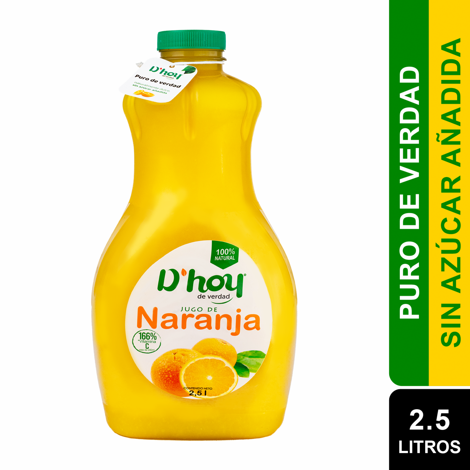 Jugo De Naranja 100 % Natural D’HOY 2.5 L – DHOY. Disponible en nuestros locales. Precio y stock pueden variar según la tienda.